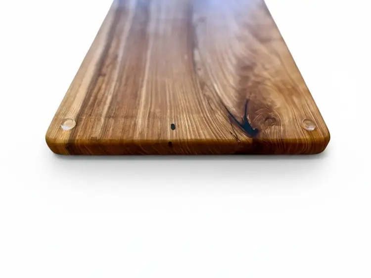 This one-of-a-kind board is a true work of natural art. Crafted from lightning-struck spalted maple, it showcases incredible grain patterns and the mesmerizing lines and colors that only spalting can create. Every swirl and streak tells the story of the tree’s life and transformation. To highlight its natural beauty, deep forest green epoxy fills the wood’s organic voids and cracks—creating a striking contrast from the natural grain. The epoxy not only enhances the wood’s character but also adds strength and durability. Perfect as a cutting board, charcuterie serving piece, or simply as a stunning home décor accent, this board is designed to impress in any setting. Whether you’re preparing food or displaying it, this handcrafted piece brings warmth, craftsmanship, and the power of nature to your table.