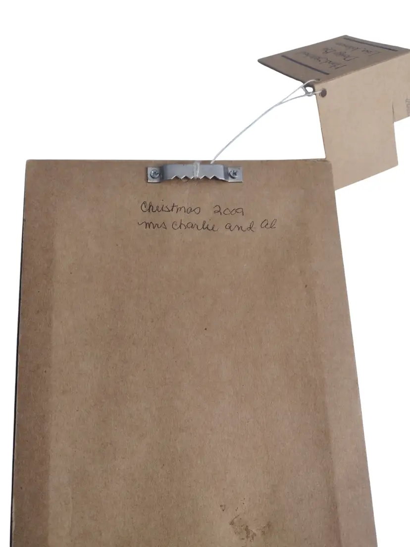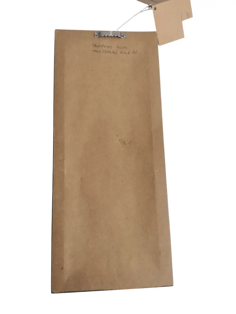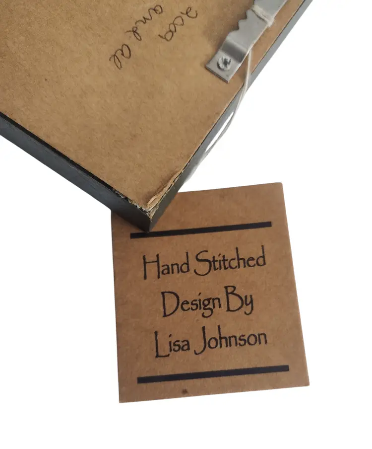 Lisa Johnson Hand Stitched Framed Linen Christmas Wall Hanging 12.25 x 5.25