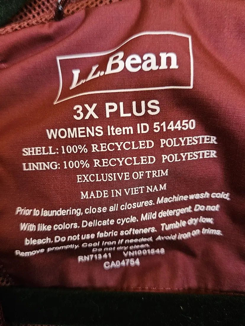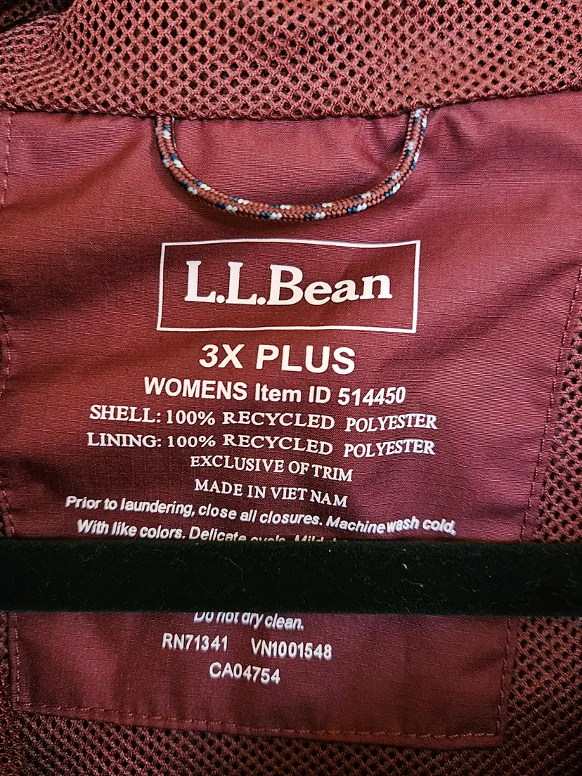 LL Bean Trail Model Hooded Rain Jacket Womens 3X Plus Maroon Packable Coat