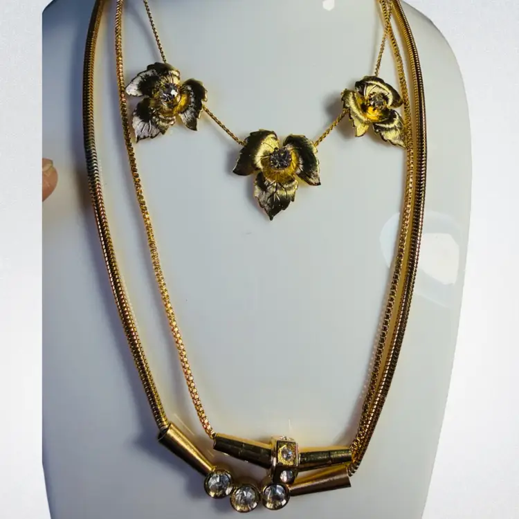 Lot Of 3 Gold Tone & Rhinestone Necklaces - 1 Is 14” - 2 Are 16”