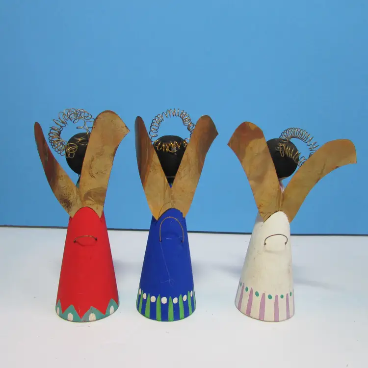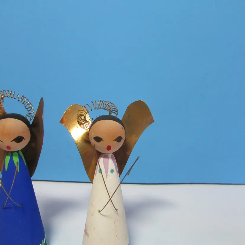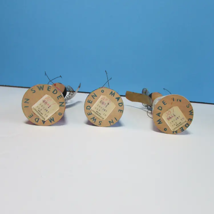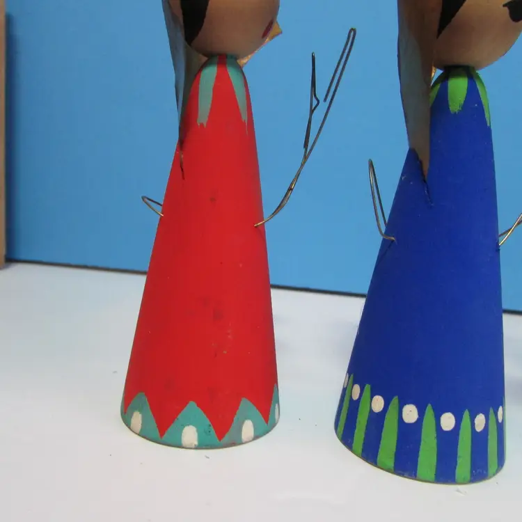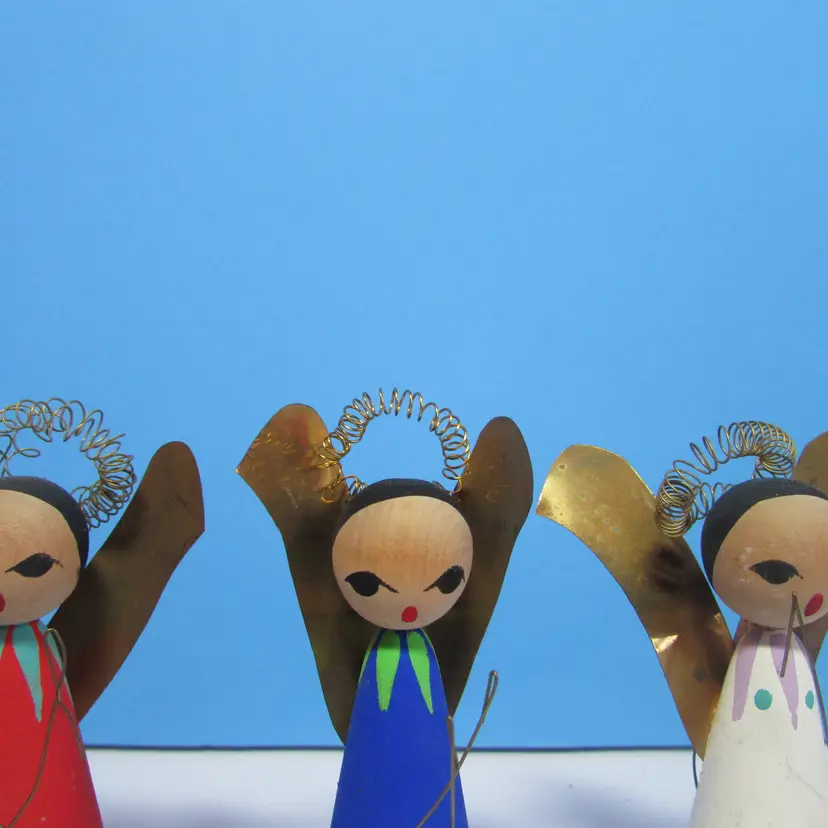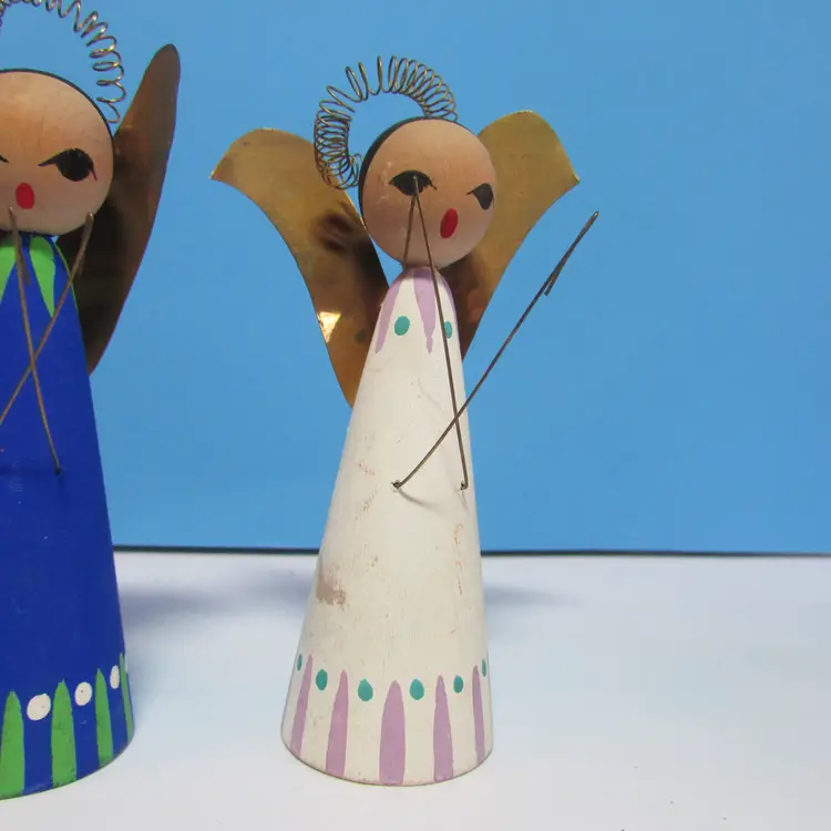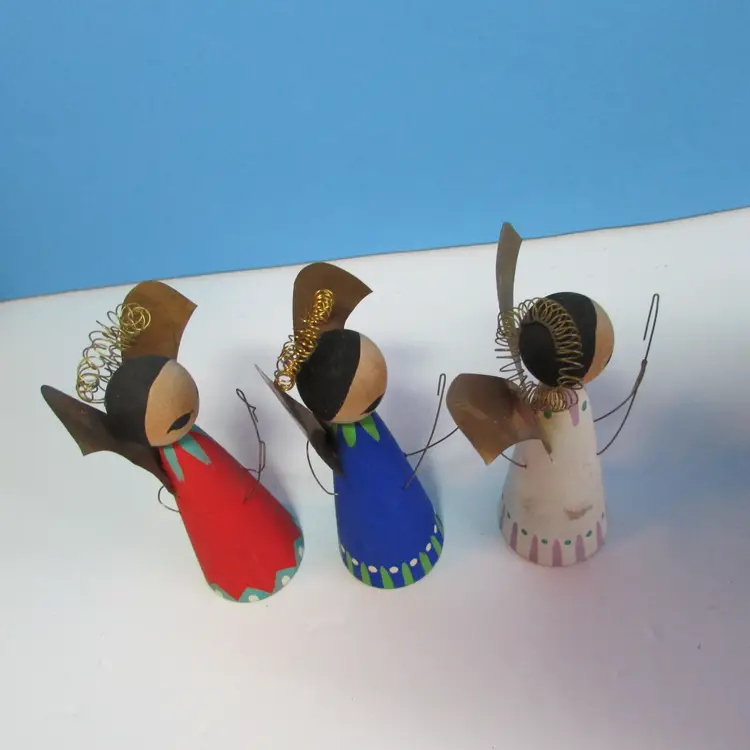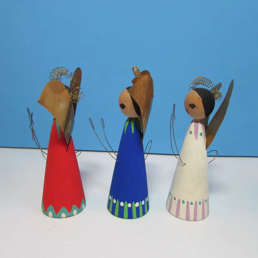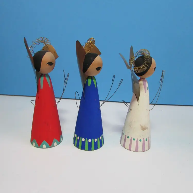 lot of 3 MCM wooden angel ornaments red white blue made in Sweden 4 1/2" tall