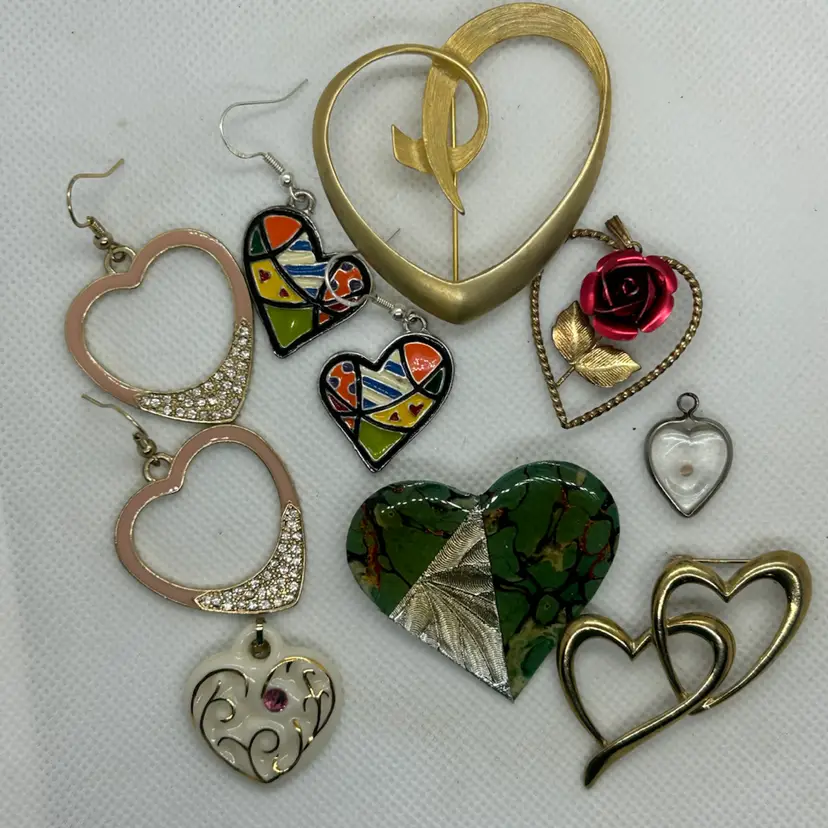 Lot contains: 2 pr. pierced earrings 3 brooches 3 pendants Please look at photos as they are part of the description.