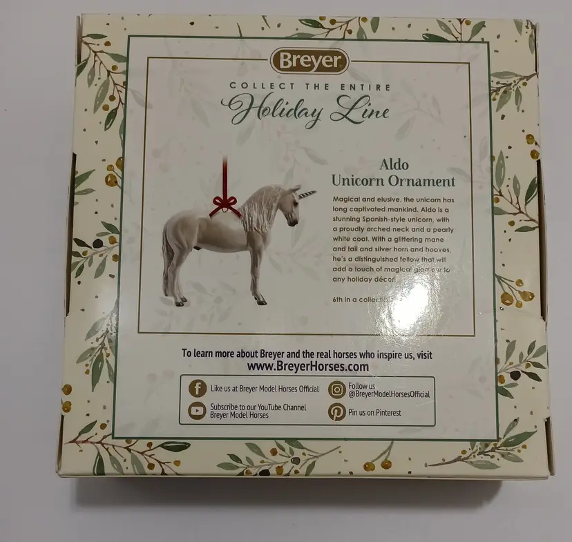NIB Breyer Magical Unicorn Ornament; "Aldo" is 6th in the Holiday Collectible Series; Pearly White Coat and a Glittering Mane; 4.5" L x 3.5" T x 2" W