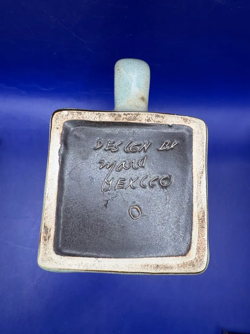 Mara Cat Mug Body of mug is square and mouth is round Design is 3 cats… one looks angry, one is mad and one smiling Measures 4 1/4 inches tall with 3 inch mouth Holds 12 fl oz No chips or cracks