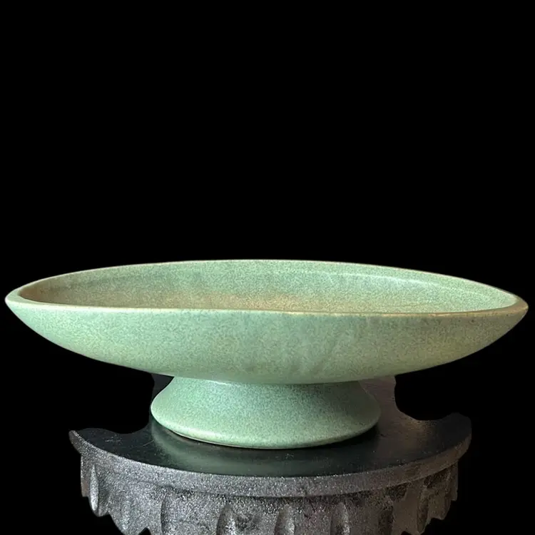 McCoy Floraline Compote Green Bowl: 10”x 3”x 7”