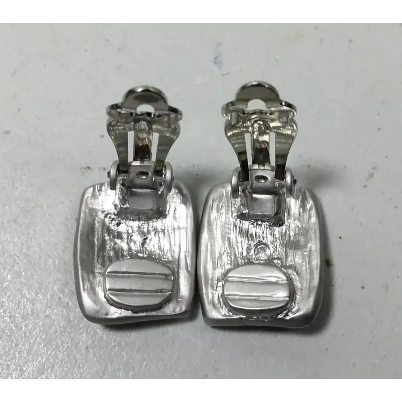 MCM earrings, silver tone metal, clip on, shine like never worn