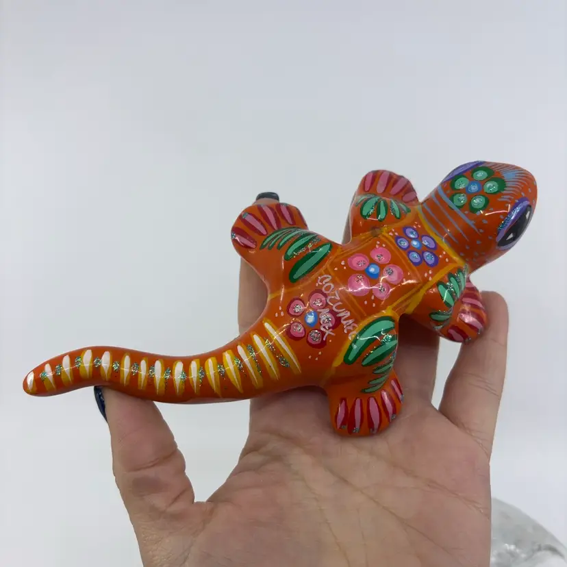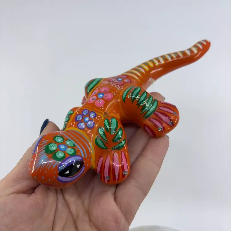 Mexican Talavera Pottery Orange Wall Climbing Lizard 6.5” Glow