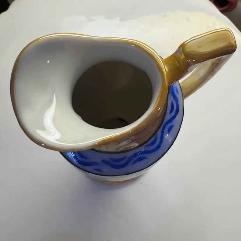 Beautiful mid century Japanese hand-painted lusterware creamer. Could also be used to hold flowers. No chips or cracks. Paint is in awesome condition. Measures 4 1/2 inches tall.