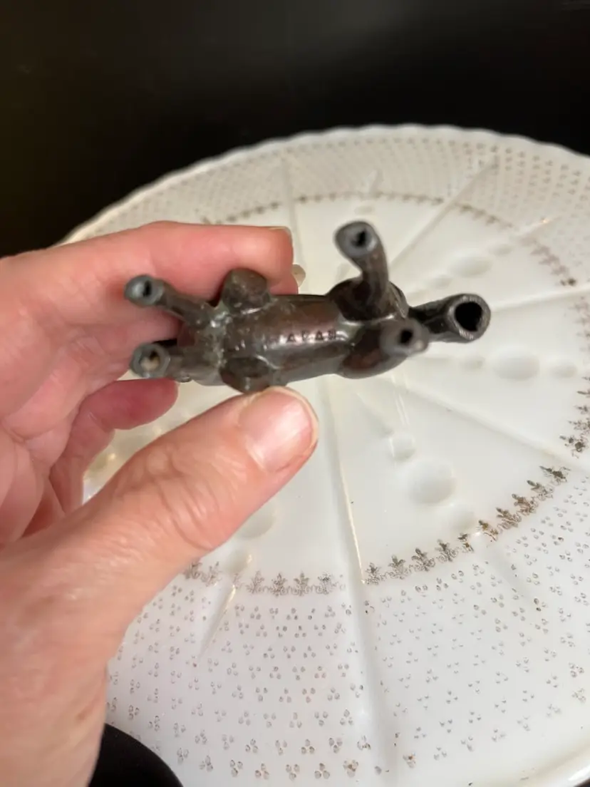 Tiniest one I've ever seen! Tiny but mighty....cute! Has JAPAN embossed on bottom. There are no call outs and is in good condition. It measures approx 2.25"H, 2.25" L, 0.75" Deep, 1.8 Oz