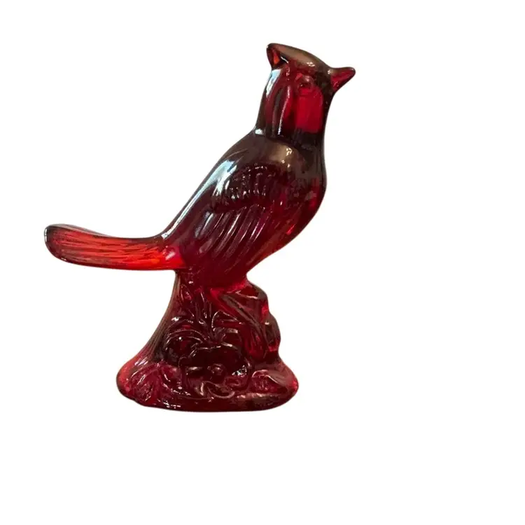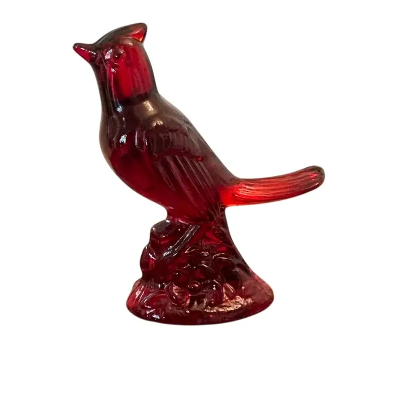 Mosser Glass Ruby Red Cardinal Bird 5” X 4 1/2” - Glows