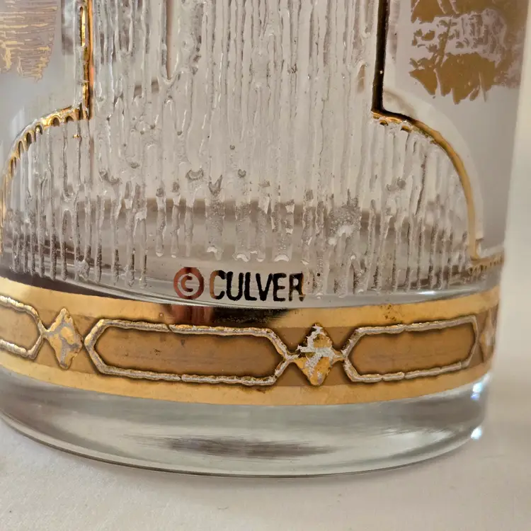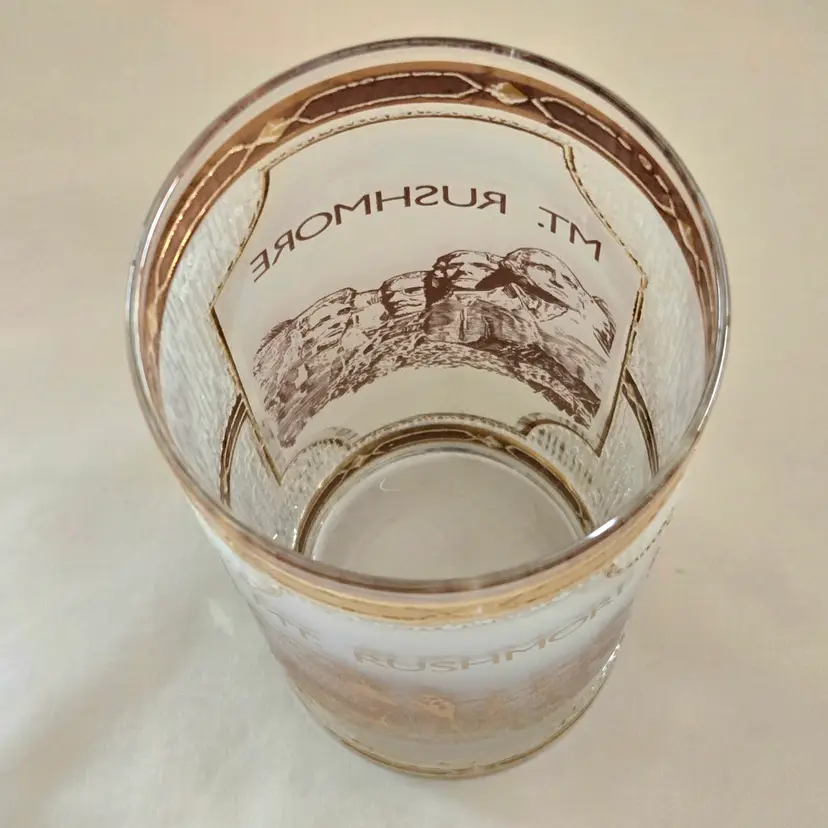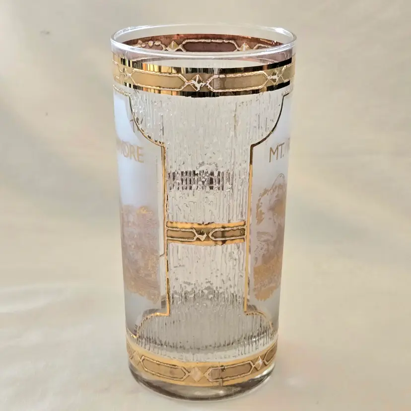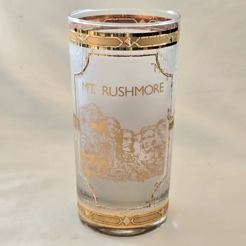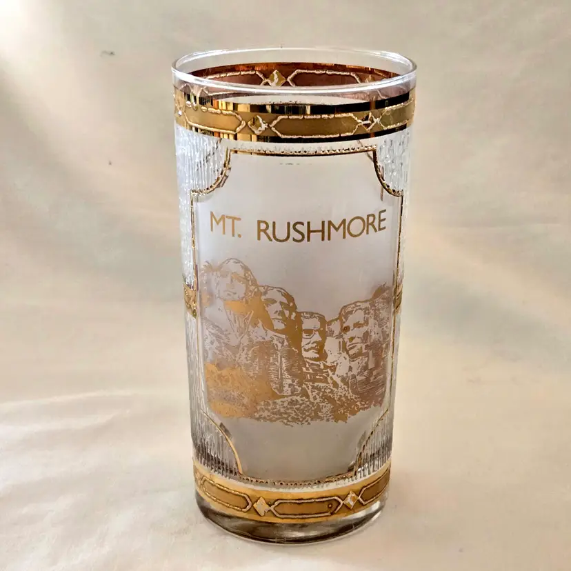 Mount Rushmore Souvenir CULVER Glass 22K Gold Trim Old Fashion Glass with Printed Logo & Condition Issues Vintage. Both buff and textured exterior. Used condition with some of the gold having worn off from handling, scrapes, scratches and a bit of dirt from handling. Please view all the photos and please ask any questions prior to purchase when possible.