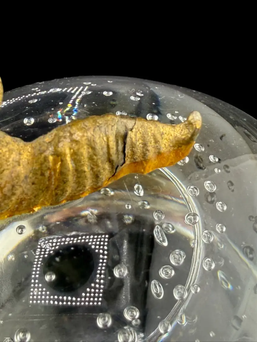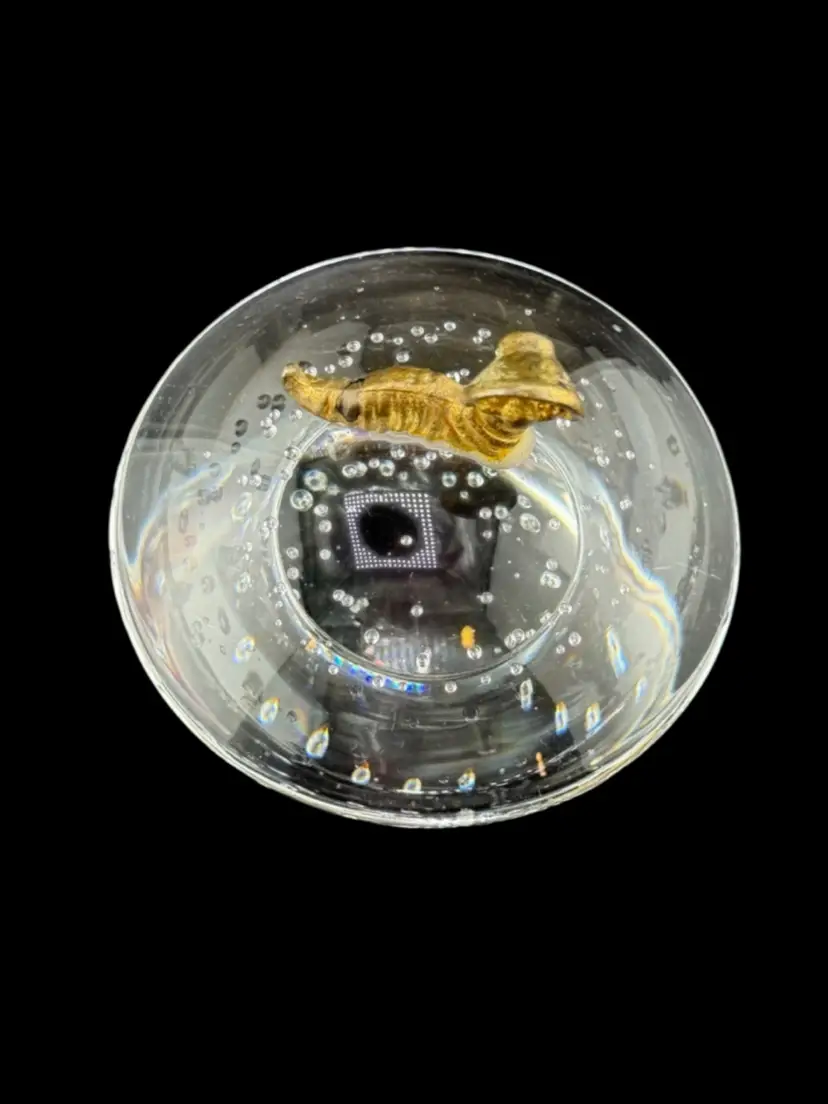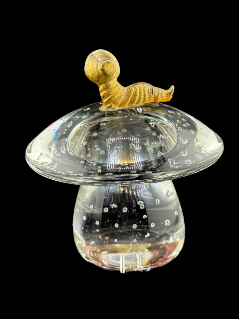 Mushroom Paperweight Caterpillar Wearing Bonett Gold Tone 3 1/2x 3"