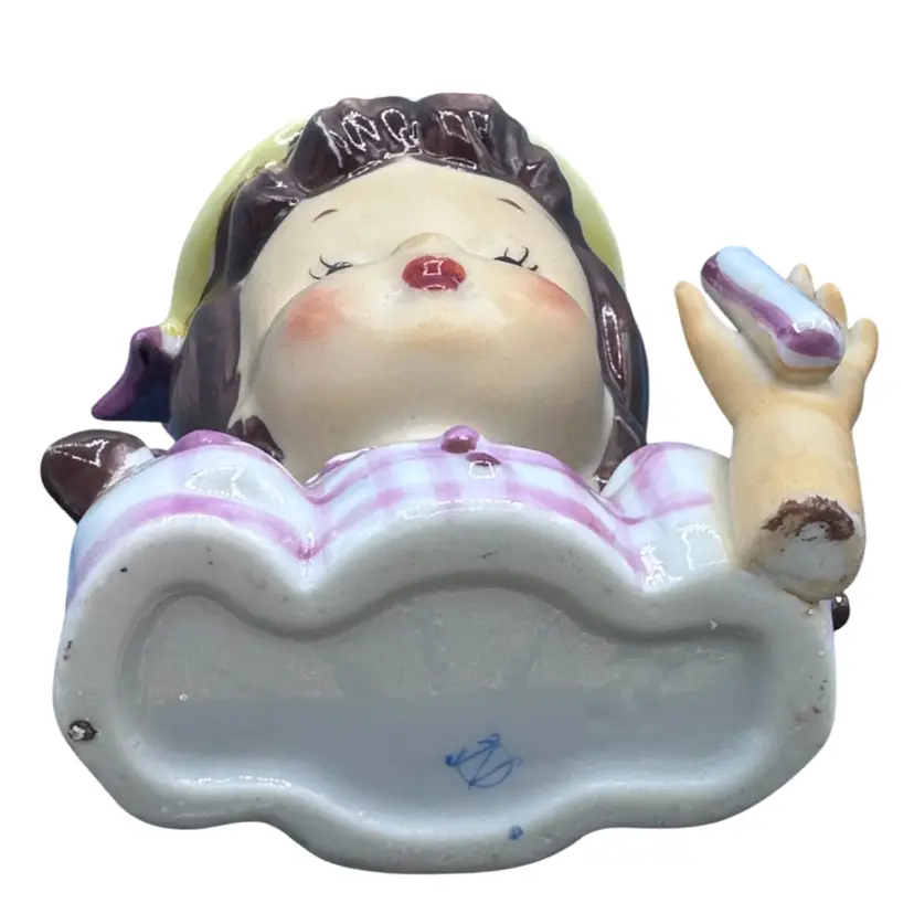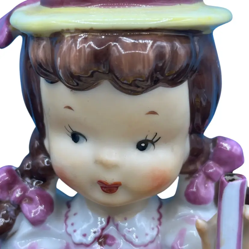 The Napco Girl Head Vase is a charming vintage piece from the 1950s. The vase features light brown hair in pigtails Good condition! Approximately 5 inches in height.