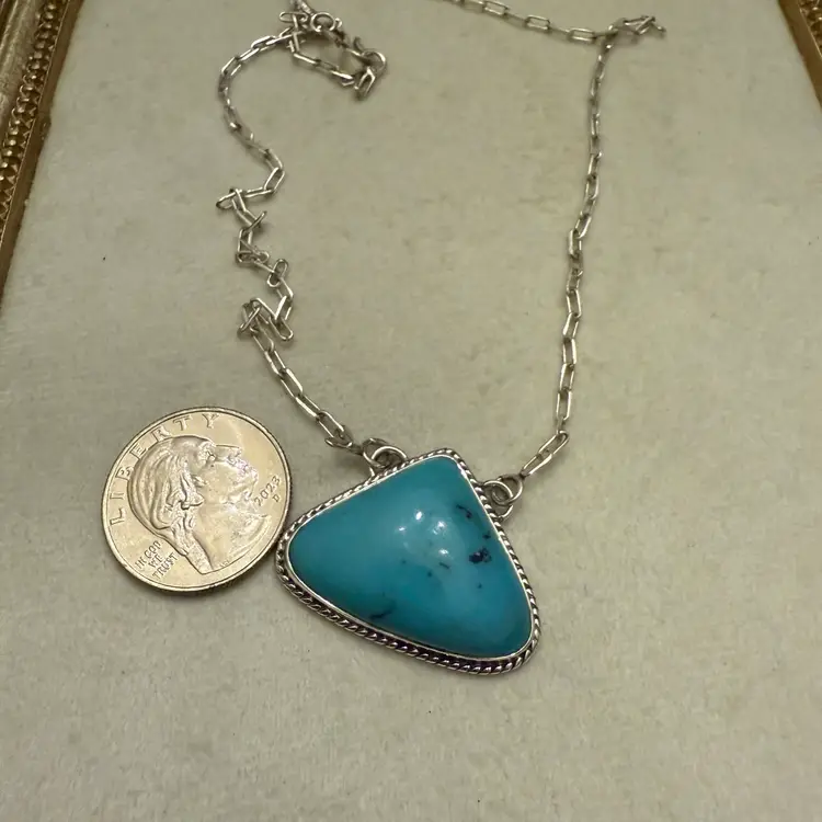 New Sterling Silver Turquoise Paper Clip 18” Necklace