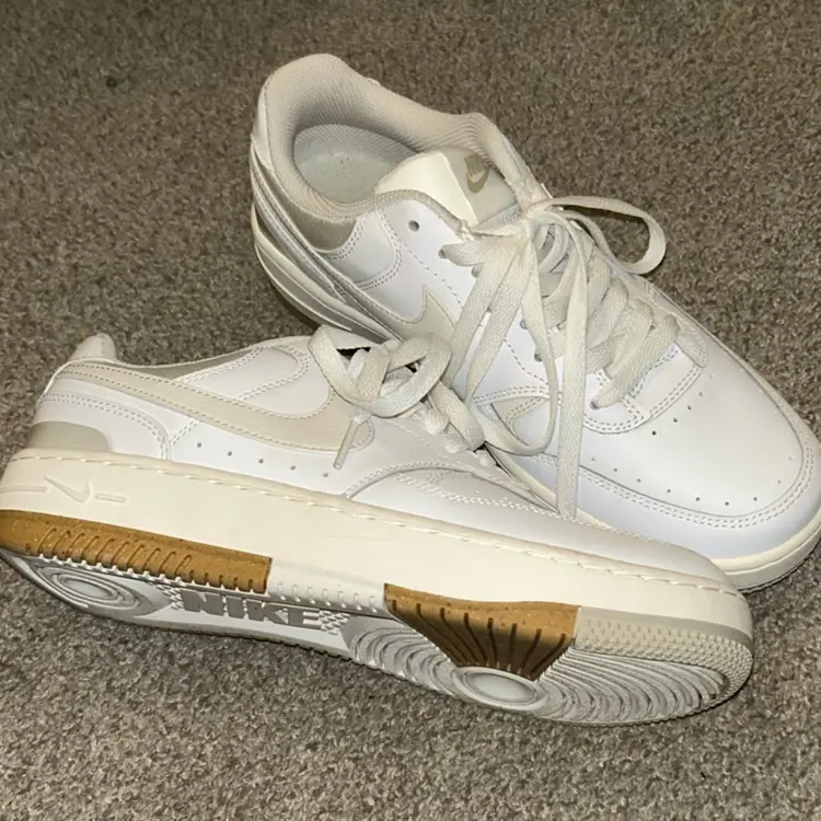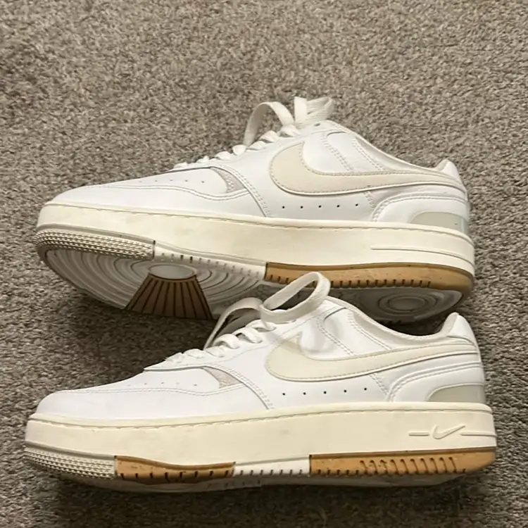 women's sneakers in a white and light bone/sand drift colorway. Worn once. Fits a bit larger than 9. $100 retail