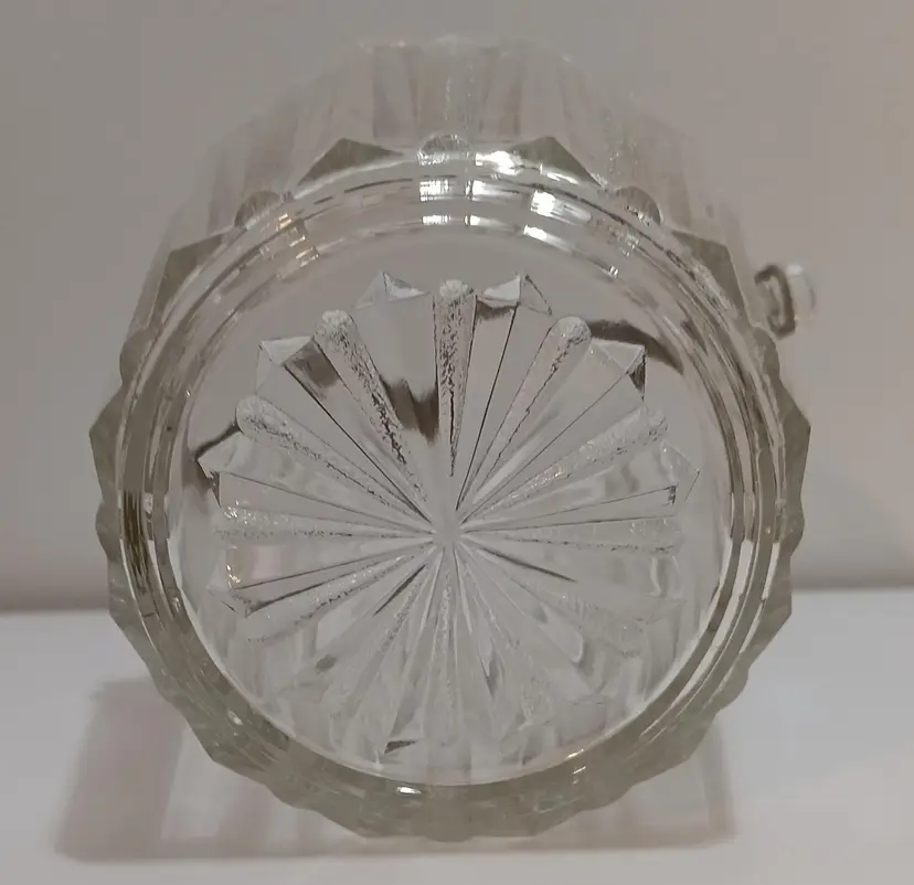 MCM 1950's Heller Glass Co. Textured Striped Glass Ice Bucket w/ Matching Silver Toned Handle & Tongs; Great Accoutrement to your Drink Station/Patio Gathering! 5.25" Tall x 5.5" Diameter; 40 oz capacity; Excellent Used Condition; No Chips or Cracks!