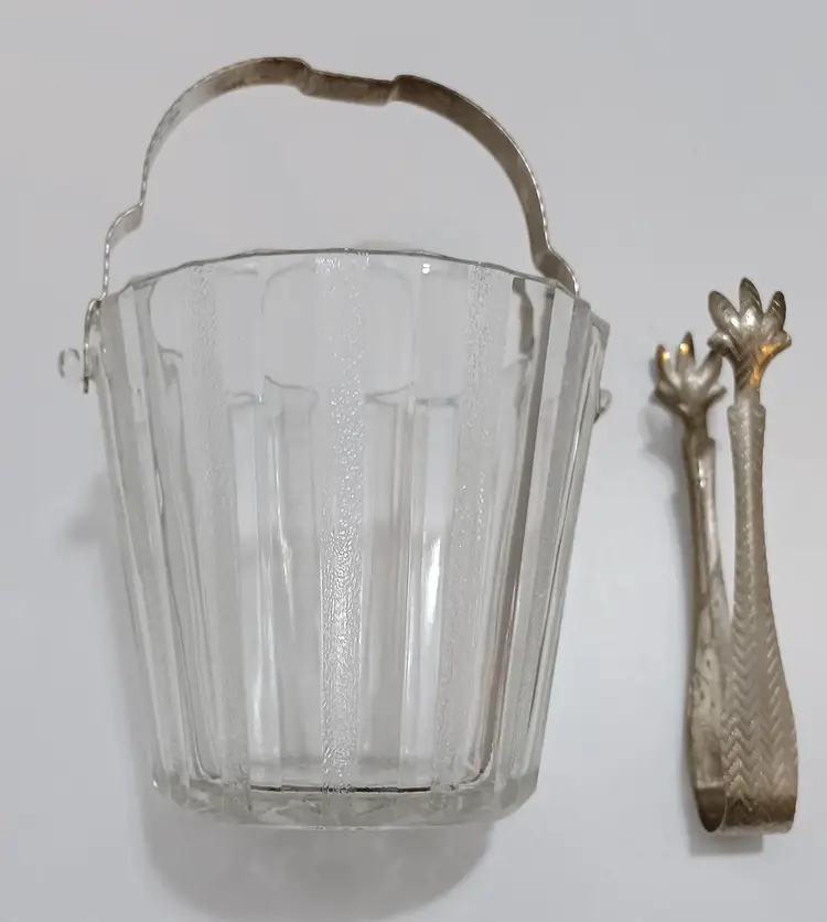 MCM 1950's Heller Glass Co. Ice Bucket With Matching Tongs