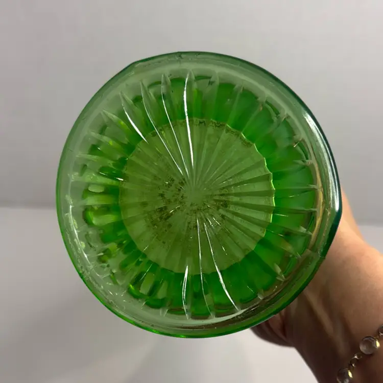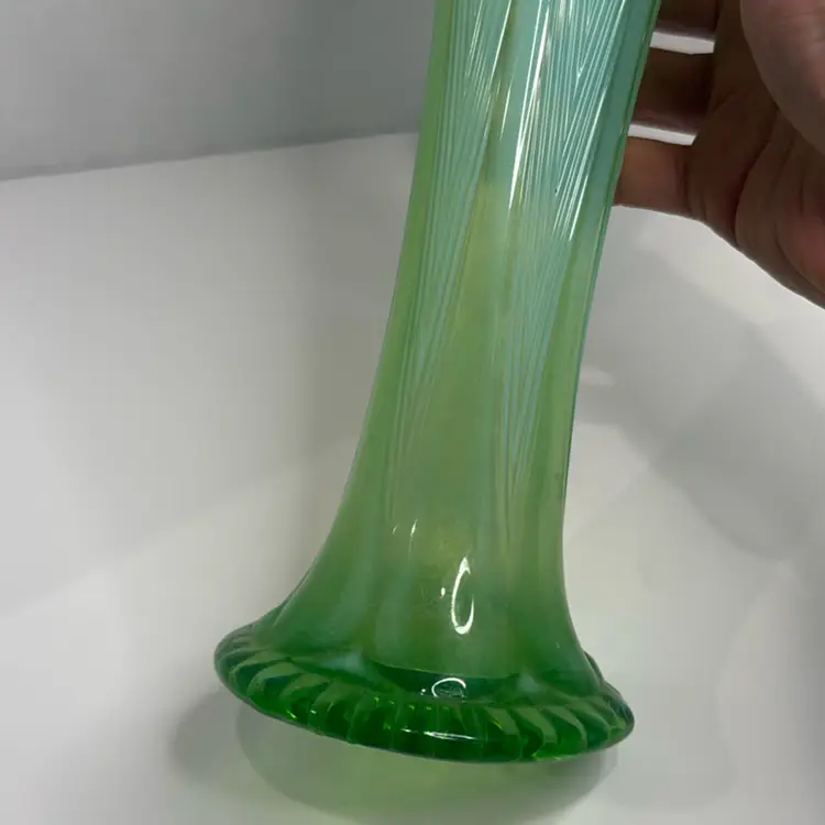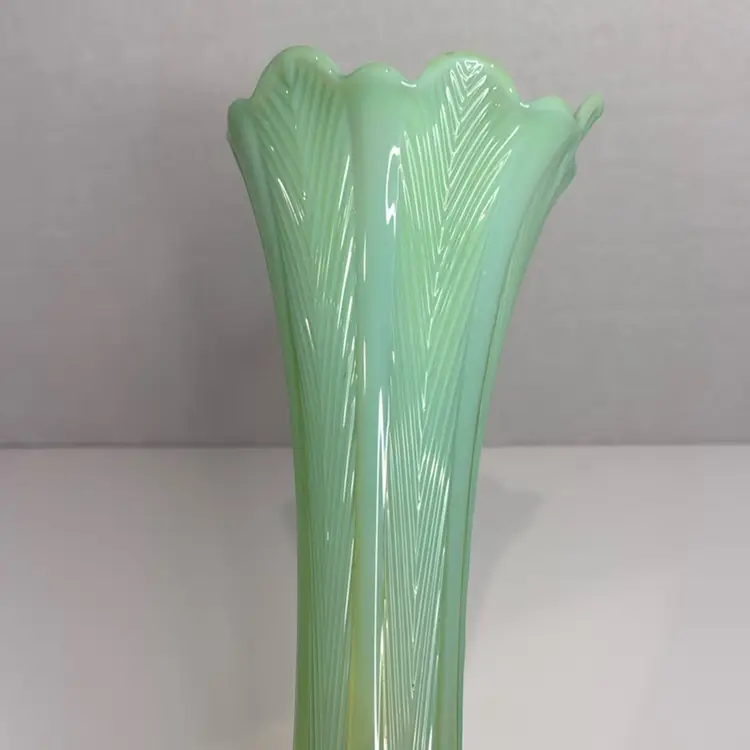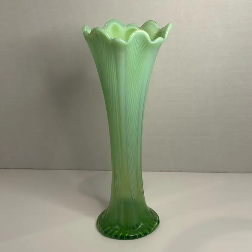 Northwood Opalescent Green With Feather Pattern Swung Vase