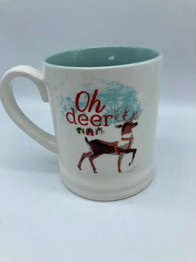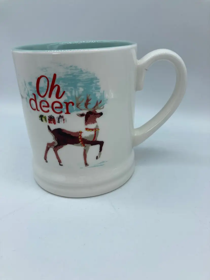 'Oh Deer' Coffee Mug Cream 16oz Stoneware Xmas Holiday - Threshold