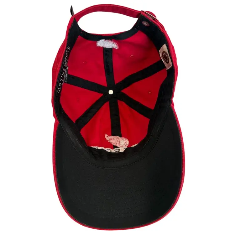 The Old Time Hockey Detroit Red Wings NHL Embroidered Red Adjustable Hat is a unisex adult accessory perfect for fans of the Detroit Red Wings hockey team. Officially licensed by the National Hockey League (NHL), this red cap features the team's logo and colors, making it a stylish and sporty addition to any fan's collection. Made for the regular season, this one-size hat is a must-have for any hockey enthusiast looking to show their support for the Detroit Red Wings.