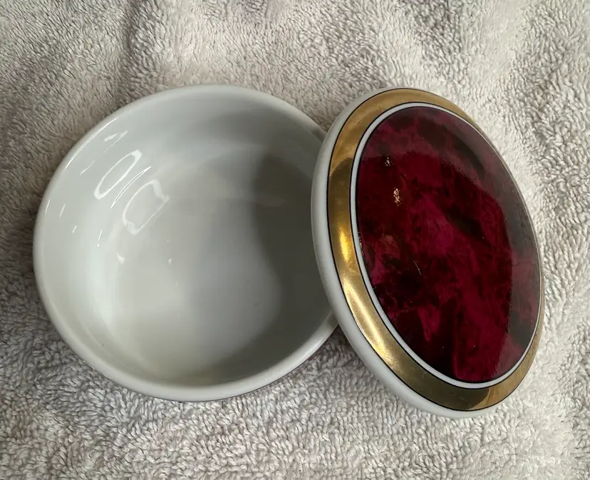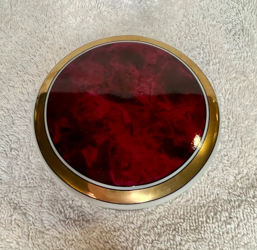 Beautiful burgundy Otagiri trinket box with lid. 4” x 2”No chips or cracks.
