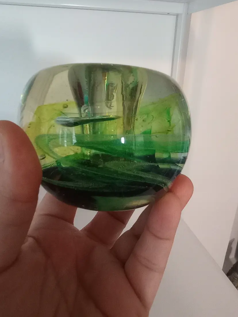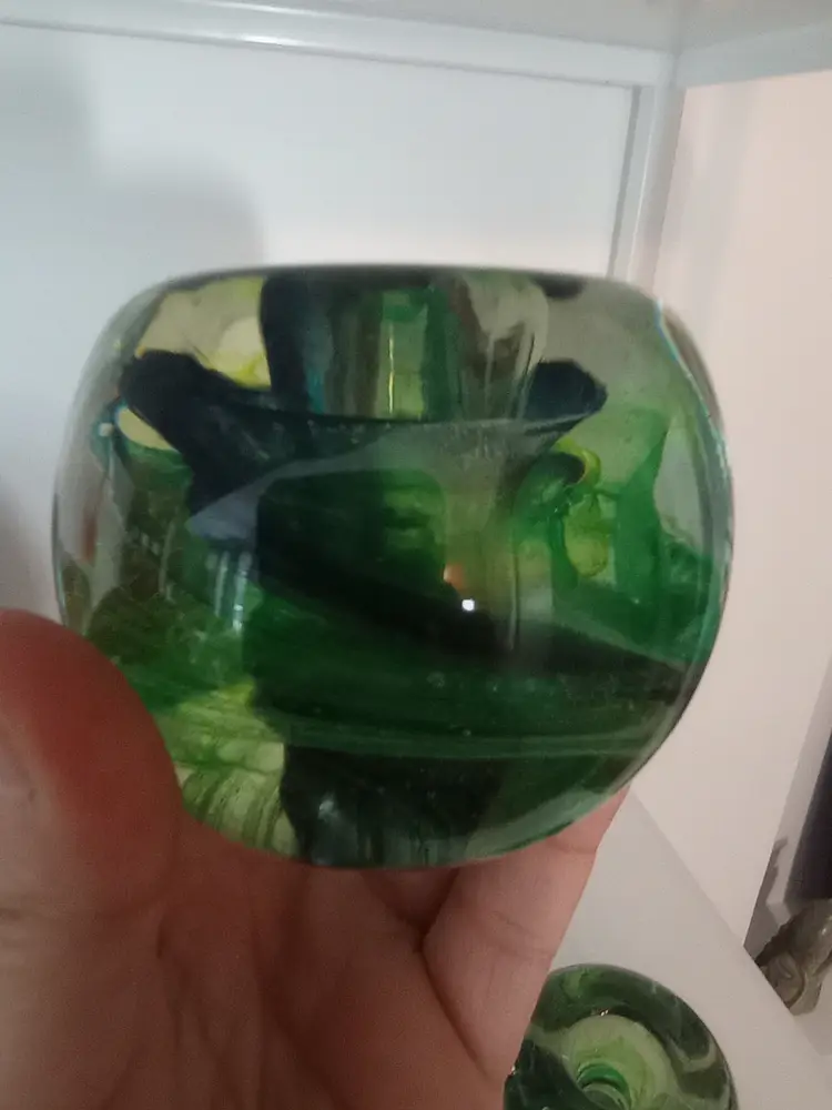 It's a beautiful pair of candleholders (paperweights) by Kerry Glass in Ireland. They are in excellent condition with no chips or cracks.