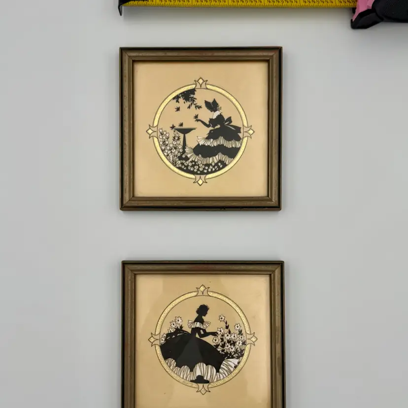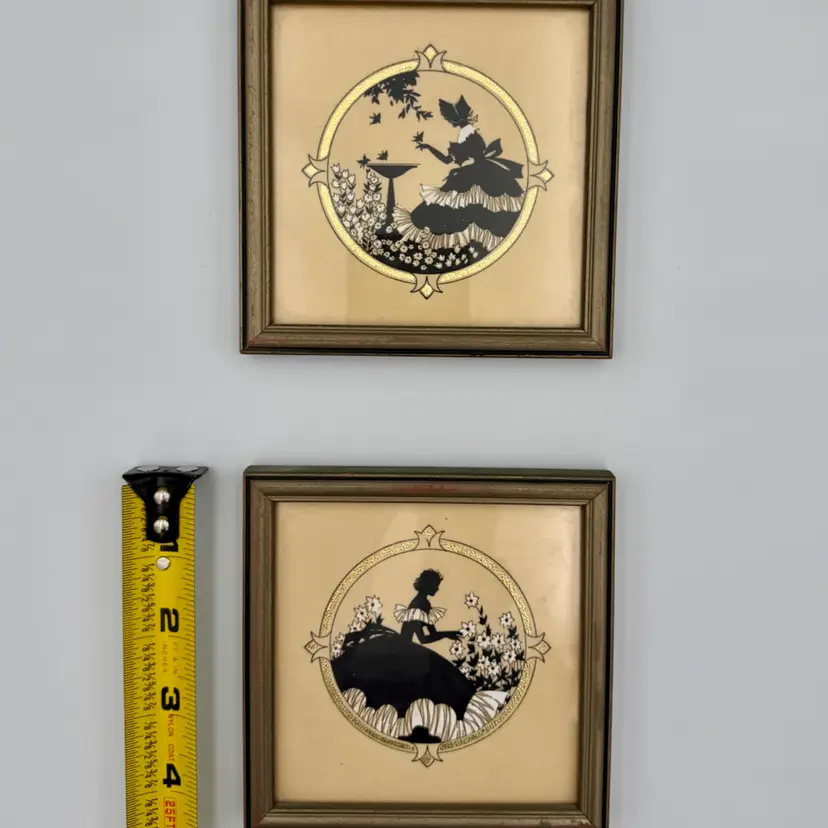 Pair Of Vintage Art Deco Silhouette Art Prints