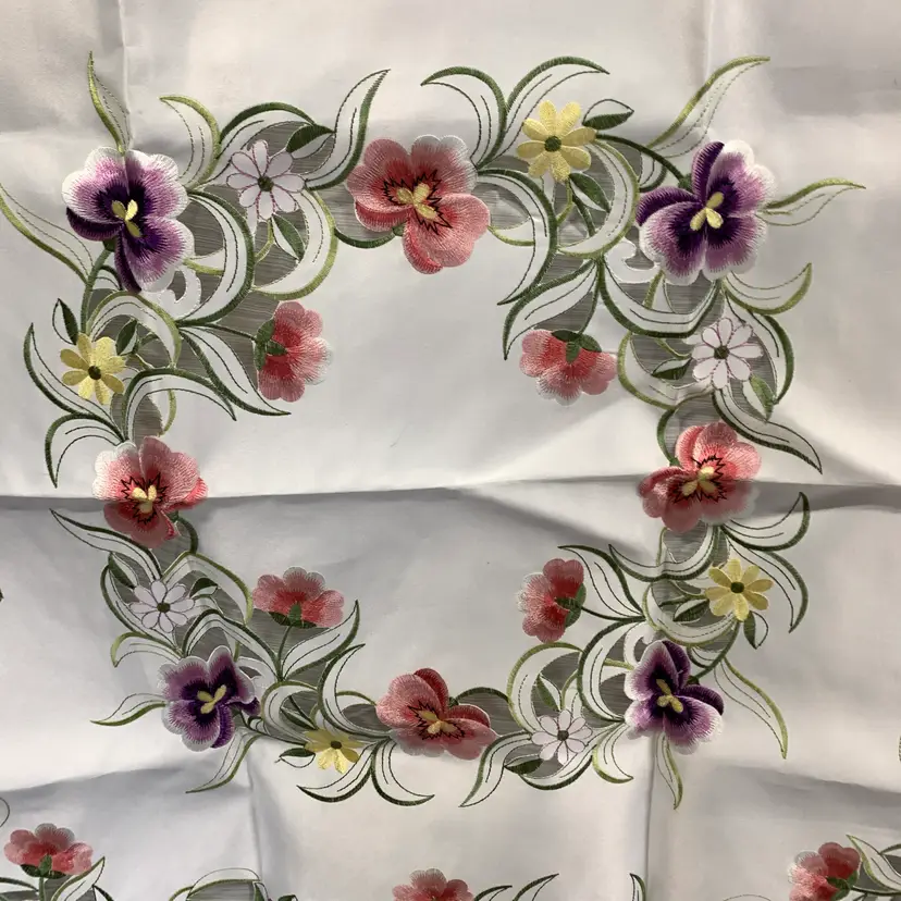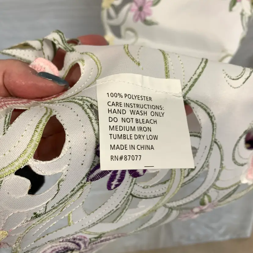 This is just beautiful! The runner measures 67 inches long and the tablecloth measures 33 inches by 33 inches. Weighs 13 ounces. If the actual postage ends up being less than what you paid, you will be refunded for anything over one dollar.