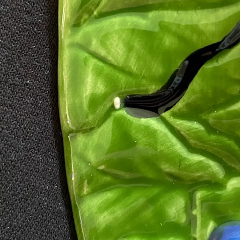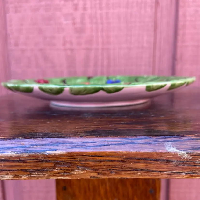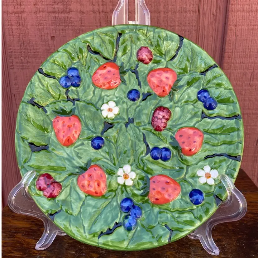 Approx 7.5”w x 0.75”h. Pre-owned condition. Painted with strawberries, raspberries, blueberries, white flowers and green leaves. One plate has spot of white, which appears to be paint and not a paint chip. See pictures as part of description.