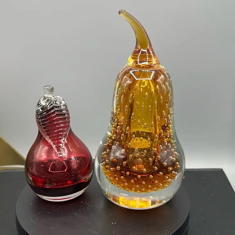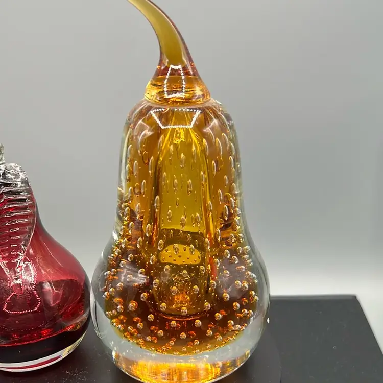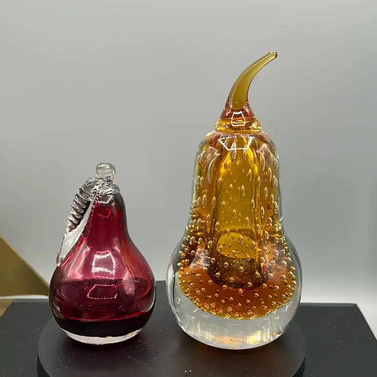 This is viking glass pear and cranberry colored pear paperwieght stamped R, bundle.
