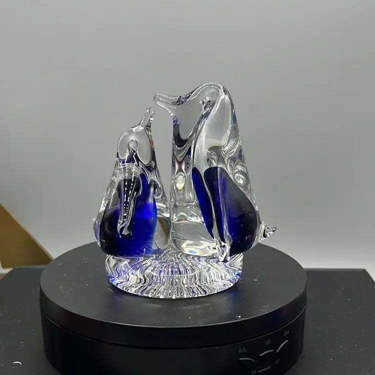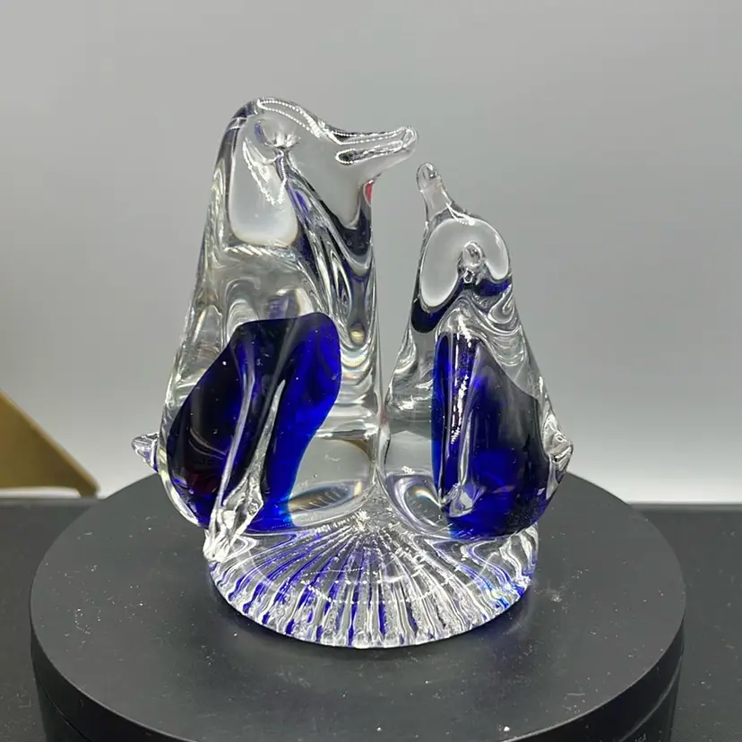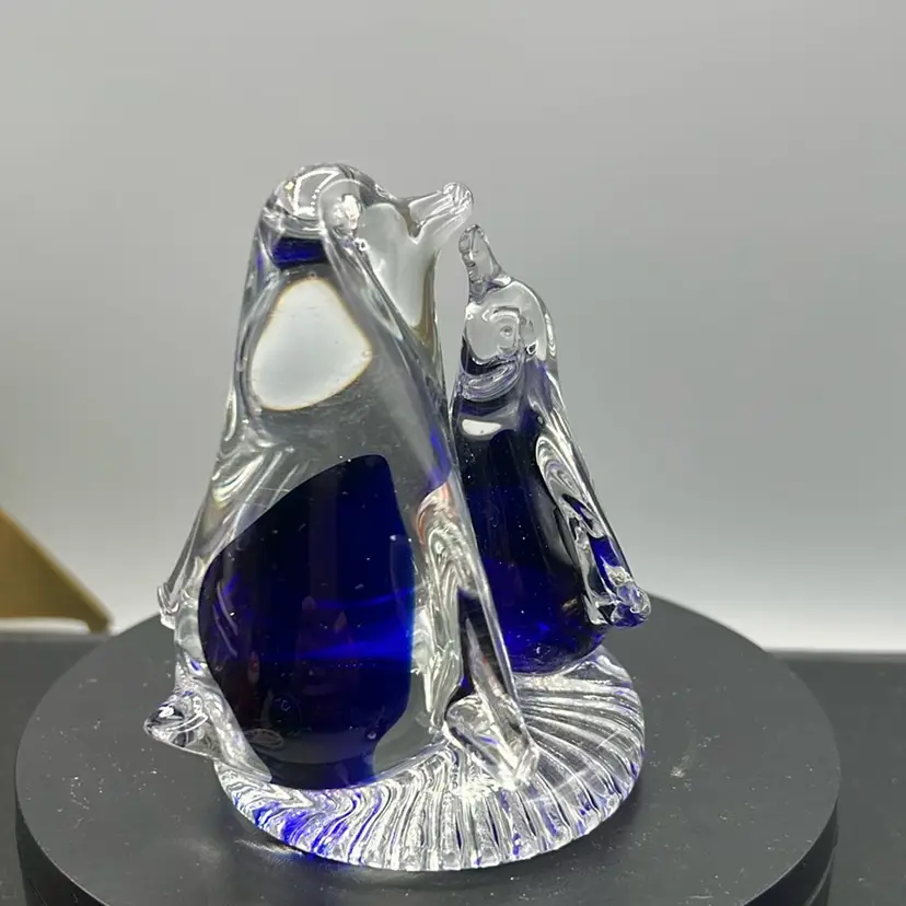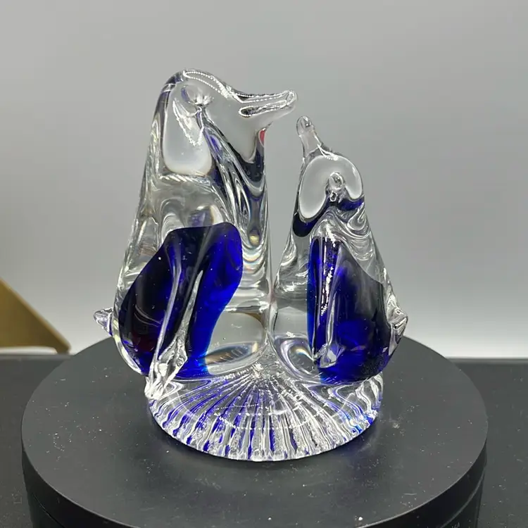 Vintage Cobalt Blue and Clear Art Glass Penguins Figurine PW