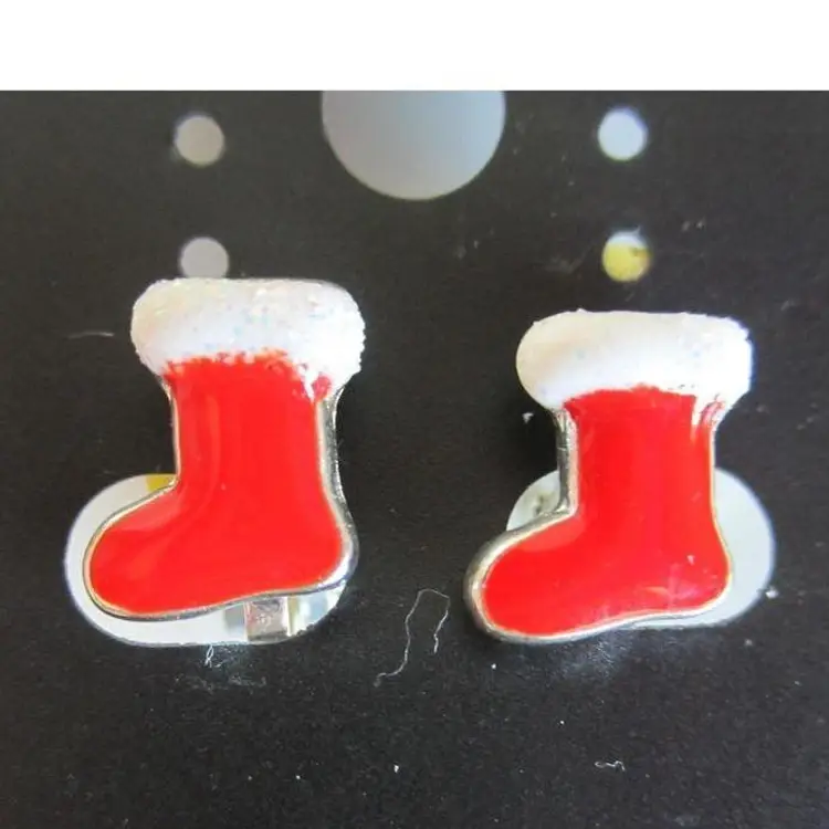 Petite mini red Christmas stockings clip on earrings. Adorable! They measure 1/3" x 1/3". They are enameled metal.