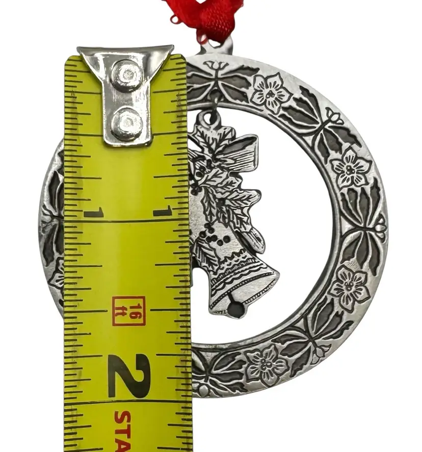 Pewter Silver Tone Christmas Holiday Ornament Bells Wreath Holly Poinsettia 2”