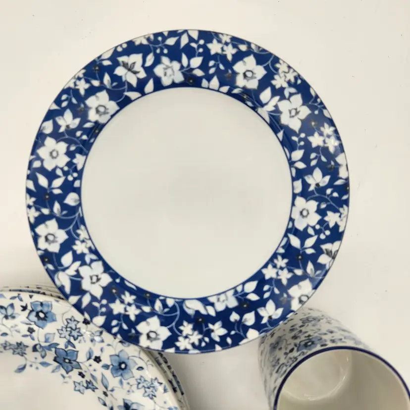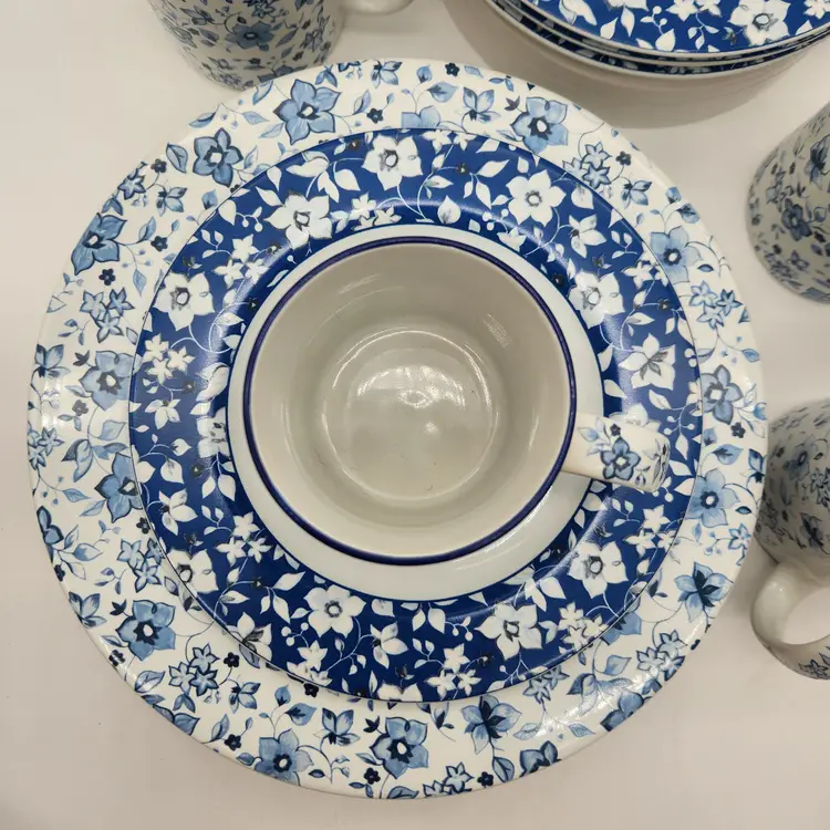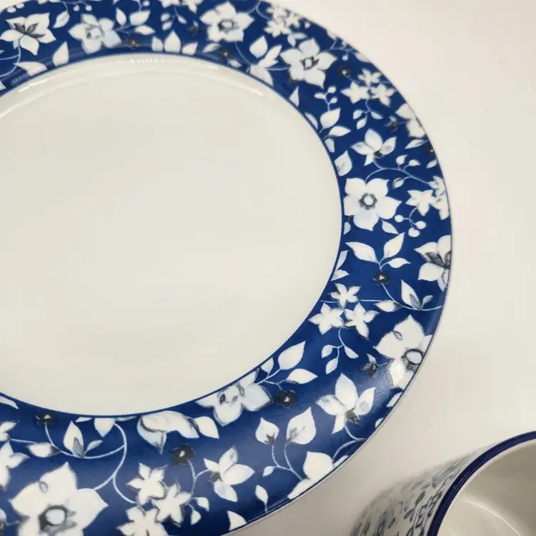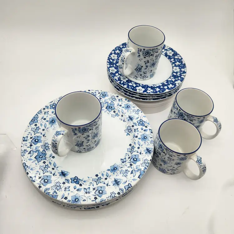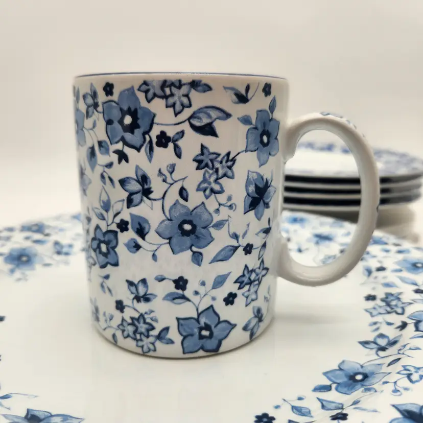 Keywords: ceramic, floral pattern, blue and white, mug set, plate set, kitchenware, tableware, home decor, dining, kitchen, gift