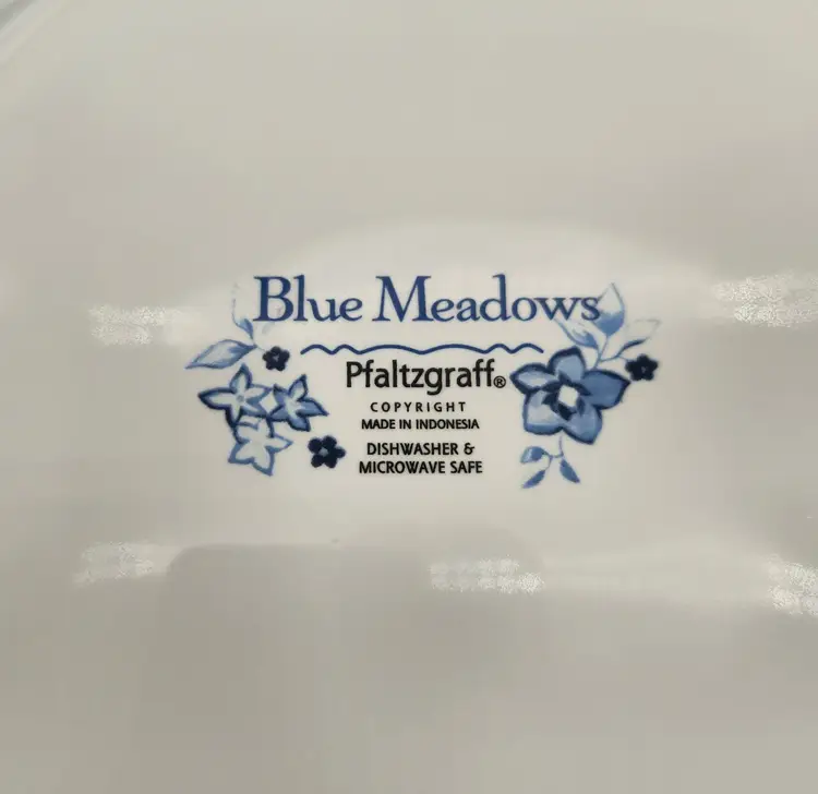 Not only are these plates infused with a beautiful blue floral pattern, they are microwave and dishwasher safe! From the trusted Pfaltzgraff company, you know these dinnerware pieces are finely crafted. The Blue Meadow Collection was discontinued in 2011-2012. Excellent Condition: no chips, cracks, or other signs of wear, Measurements: Dinner Plate - 11" in diameter indented area 7" in diameter; Salad/Dessert Plate - 8 1/4" in diameter indented area 5 1/4" in diameter; 4" tall, 3 1/4" in diameter at rim