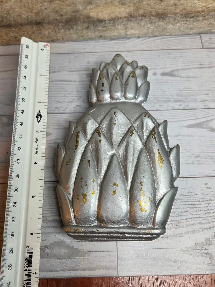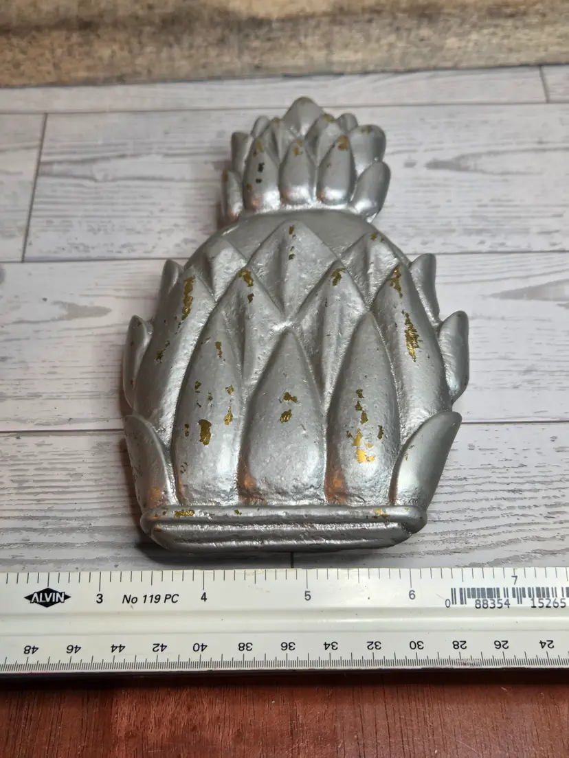 Silver and gold tones. Small but heavy. Well made.