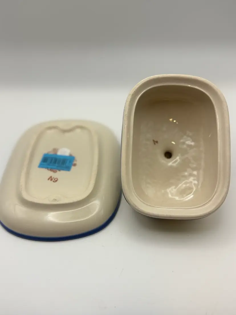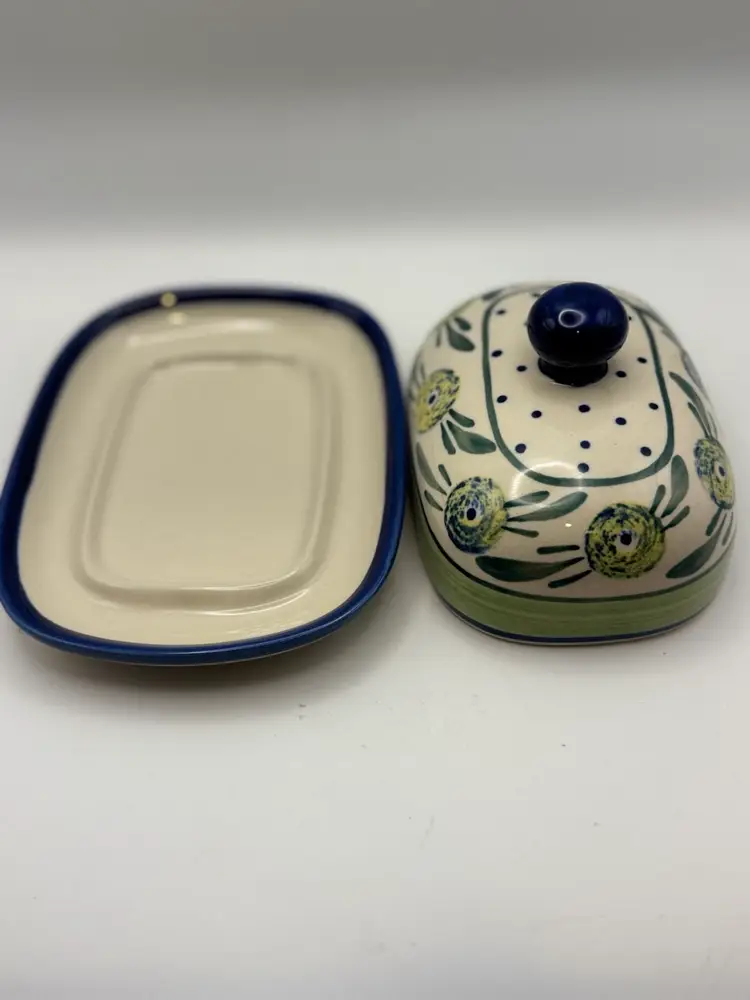 Polish Pottery Butter Dish ‘Lemon Swirl’ Pattern 4" x 6"