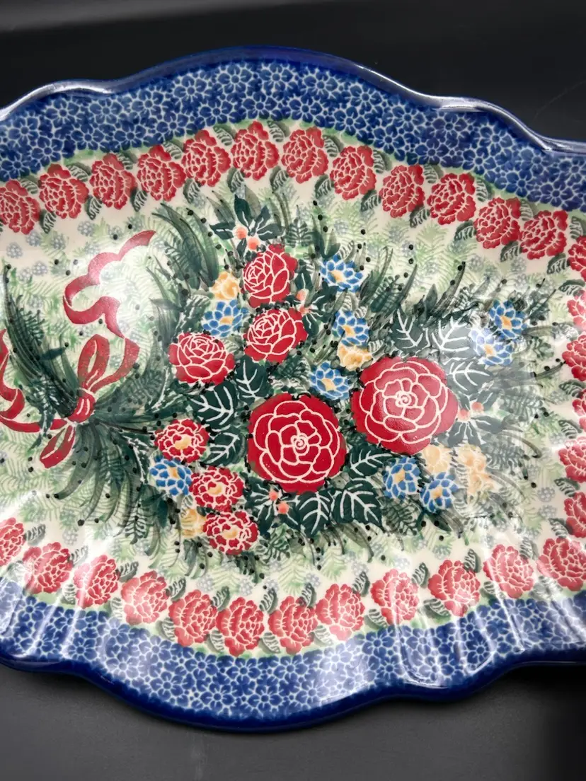 Polish Pottery Unikat M. Starzyk “ The Legend Of The Christmas Rose” Bouquet Edition Platter