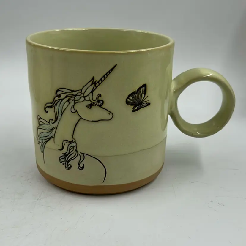 3.75” T 3.75” W (without handle) Condition: Glazed on top portion and bisque on the bottom has some marks.