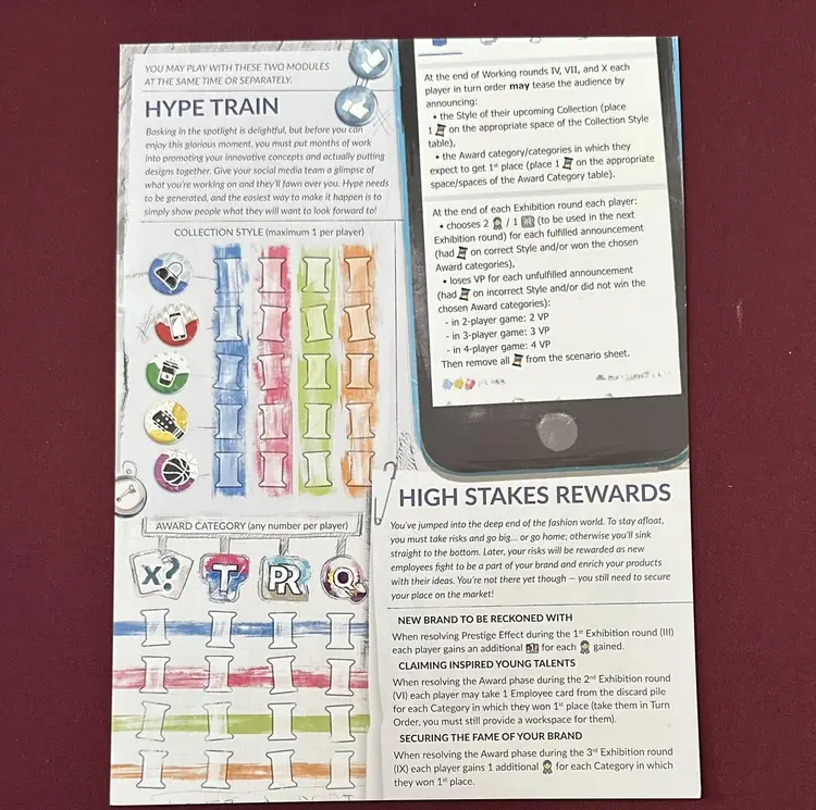 Brand new. Never been opened. Still in shrink wrap. Includes an additional player sheet. I don’t remember if this was sent to me as a correction to a player sheet or if this was a promo item. See the pictures for both sides of this sheet. BGG Description: Prêt-à-Porter is an economic strategy game set in a world of fashion. Players run clothes companies and fight for dominance during fashion shows. It is – perhaps – one of the most cruel and ruthless of all our games. Money can be a dangerous weapon.
