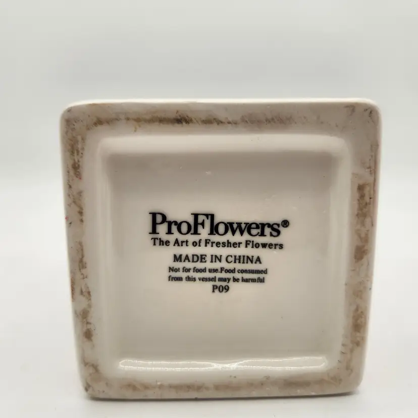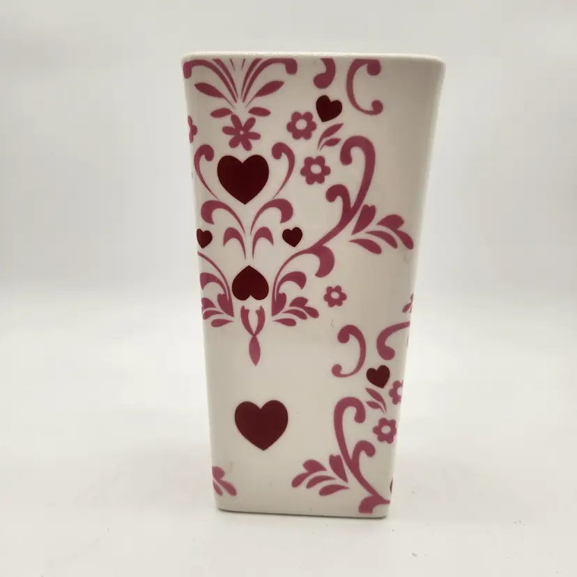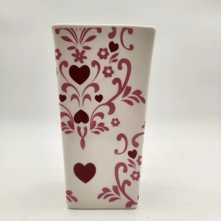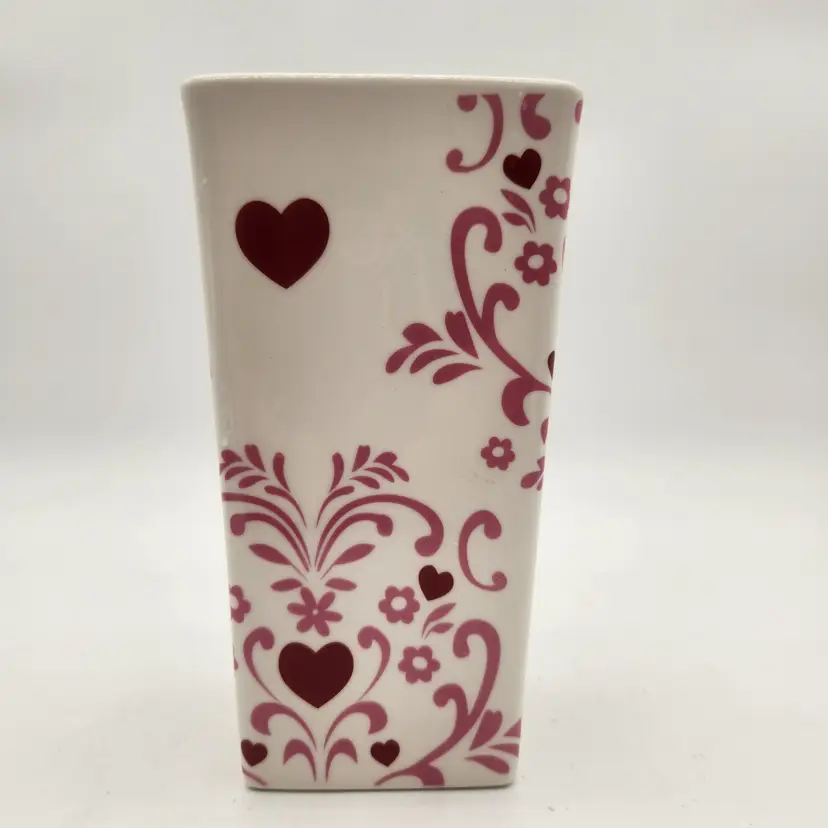 ProFlowers White Square Tall Vase Burgundy Hearts Pink Scrollwork Valentines Day