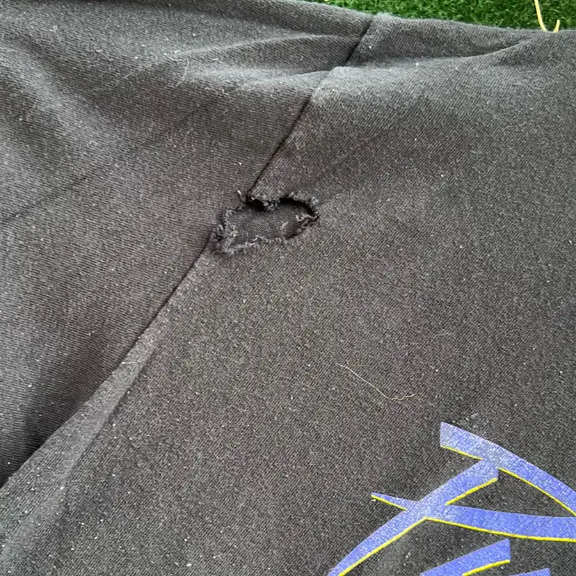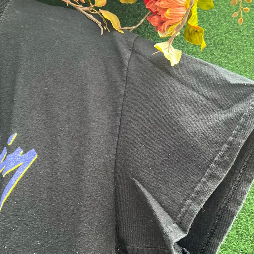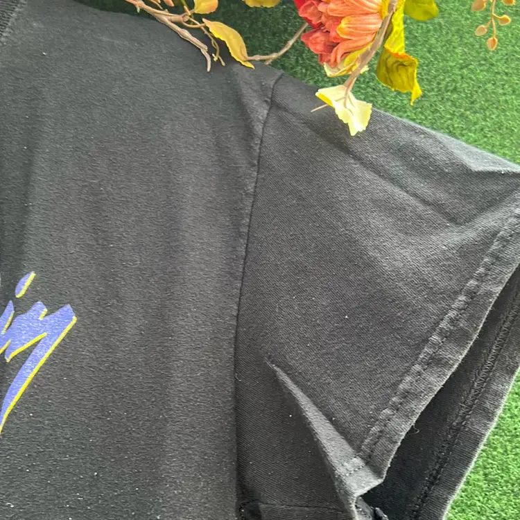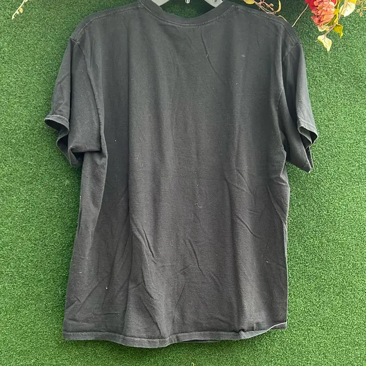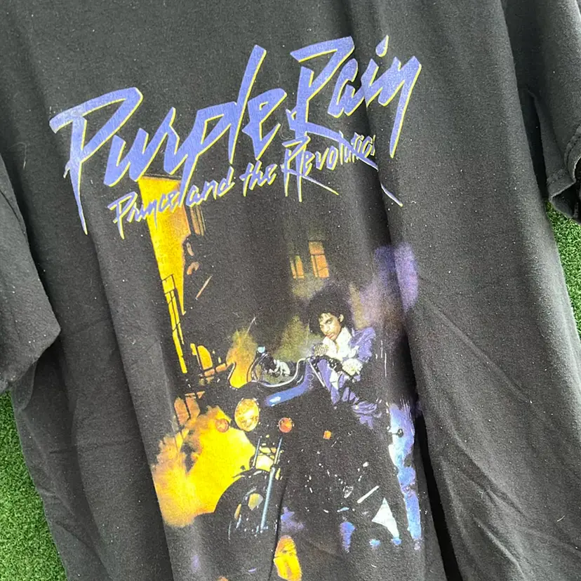 Purple rain, prince and the Revolution size large T-shirt pit to pit is 22 1/2 inches length is 26 inches note. There is a hole on the right side of the sleeve as noted in picture.