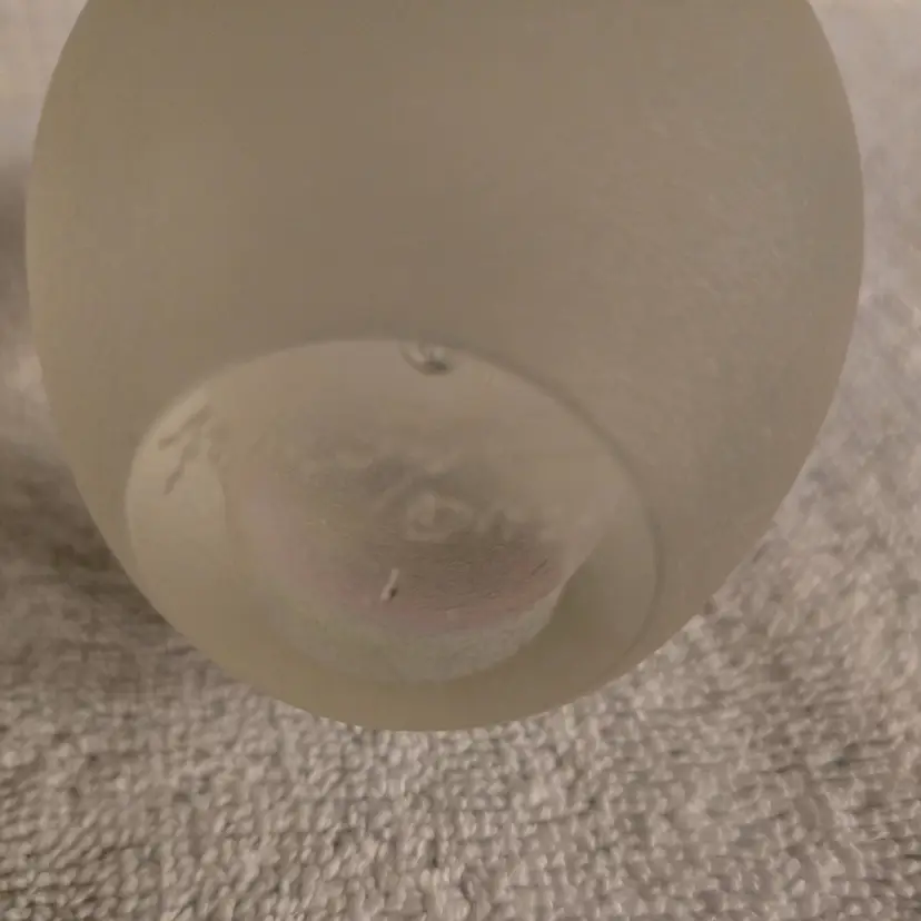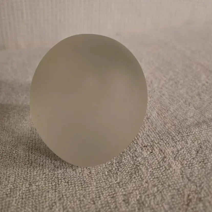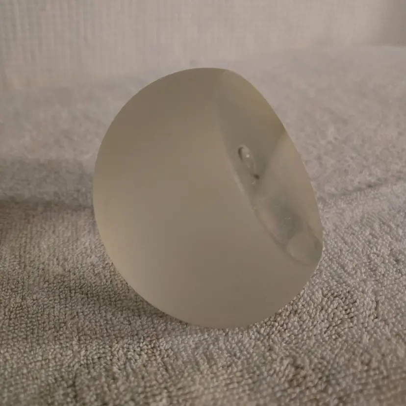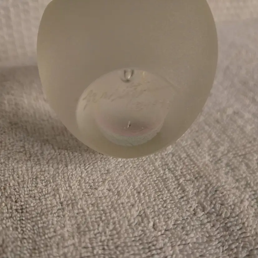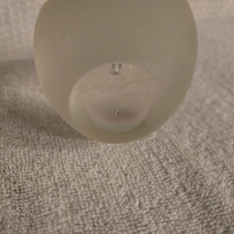 This is a frosted glass dichroic paperweight with a controlled bubble design. It has interior swirls encased within clear crystal and Irredescent glass. It is signed RW Stephan@1994. 3" tall and 1" across the polished bottom. In excellent condition. No chips, cracks, or scratches.