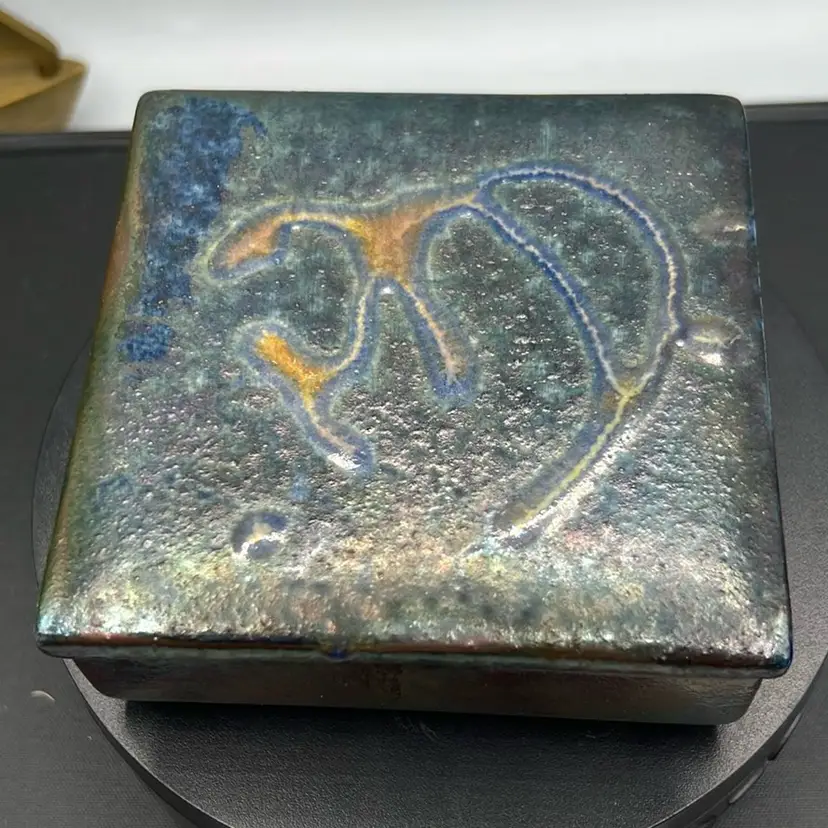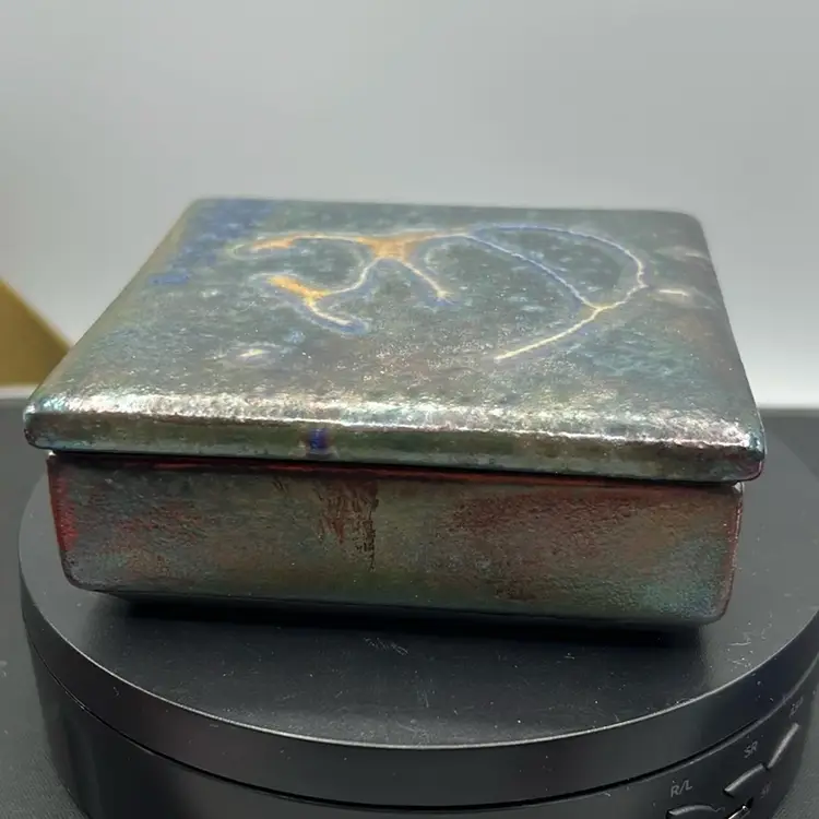 vintage Raku pottery jewelry or trinket box, by Joyce E. Furney
