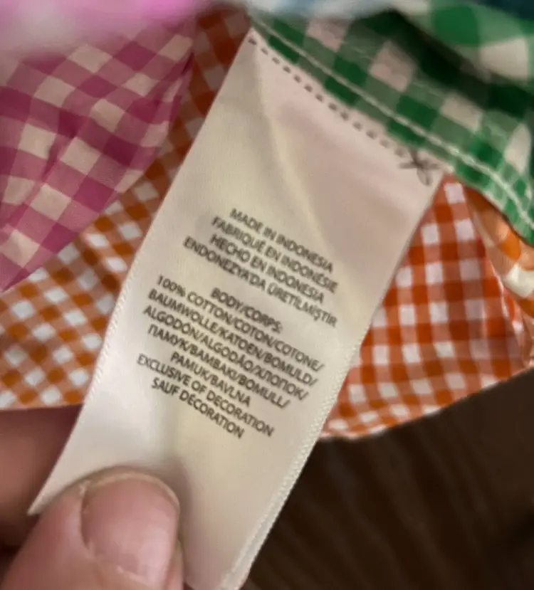 Cotton construction with multicolor patchwork gingham panels