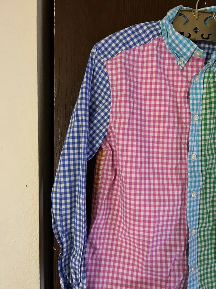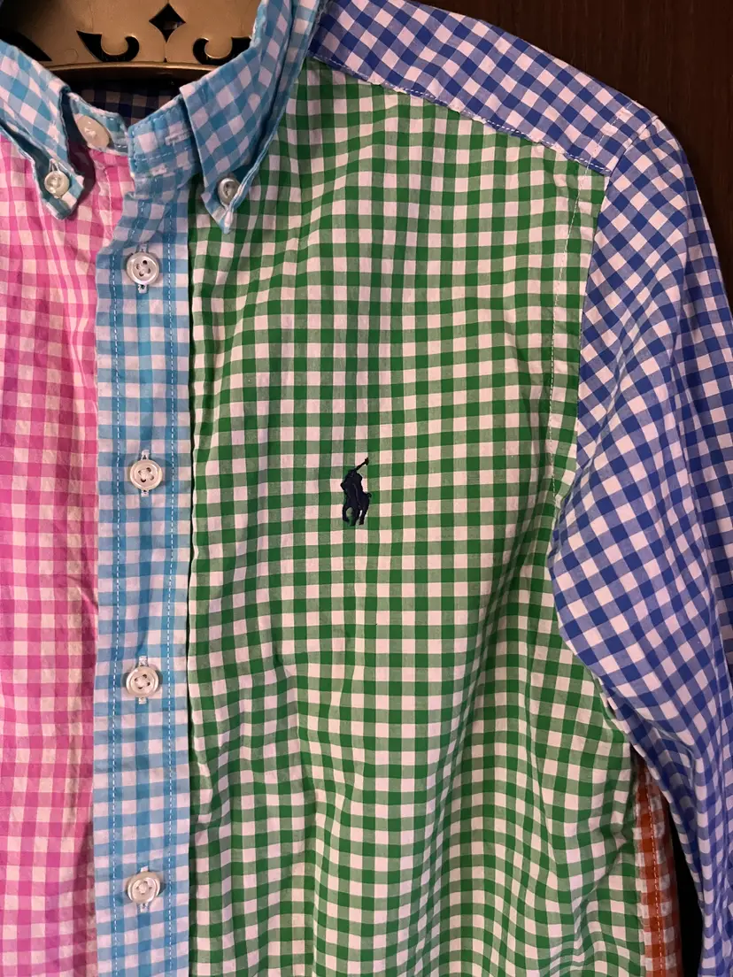 This RALPH LAUREN boys button-down blends bold patchwork gingham colors with classic preppy style, perfect for school, events, or photos. Soft cotton, standout color blocking, and great movement make it a fun, confidence-boosting piece kids love to wear.