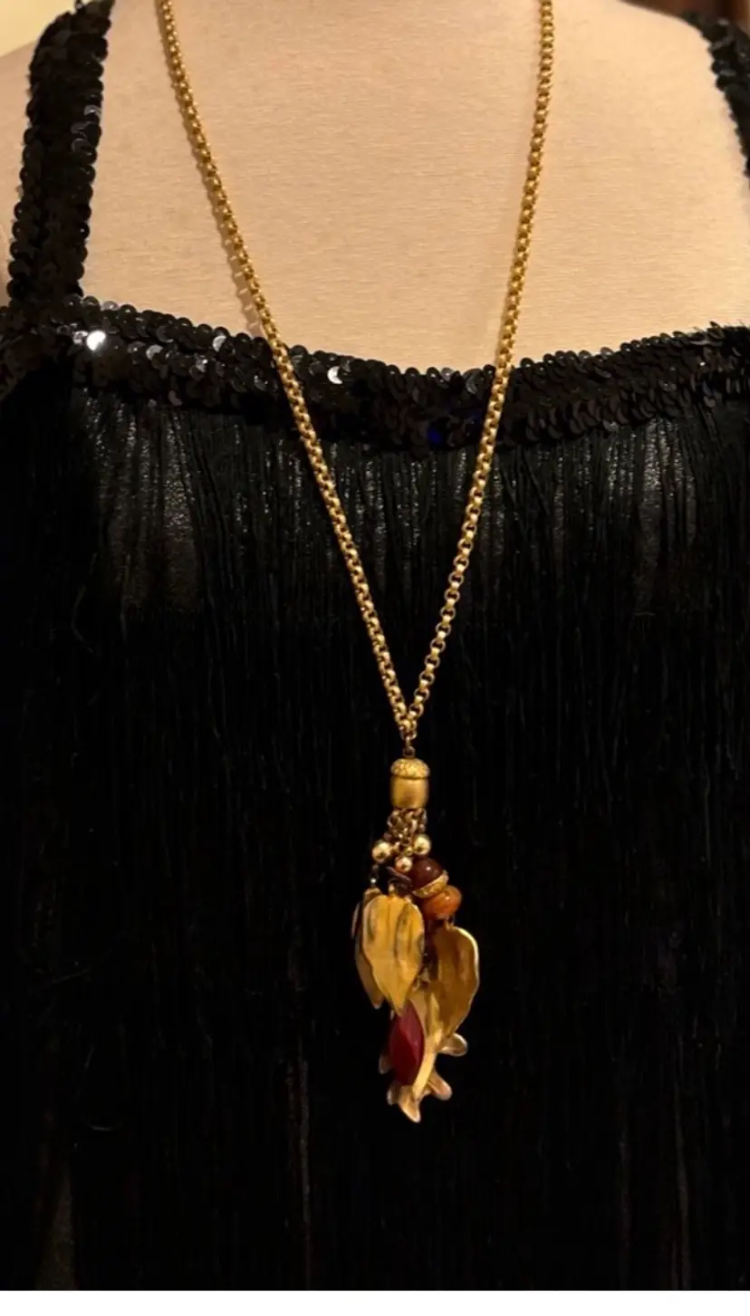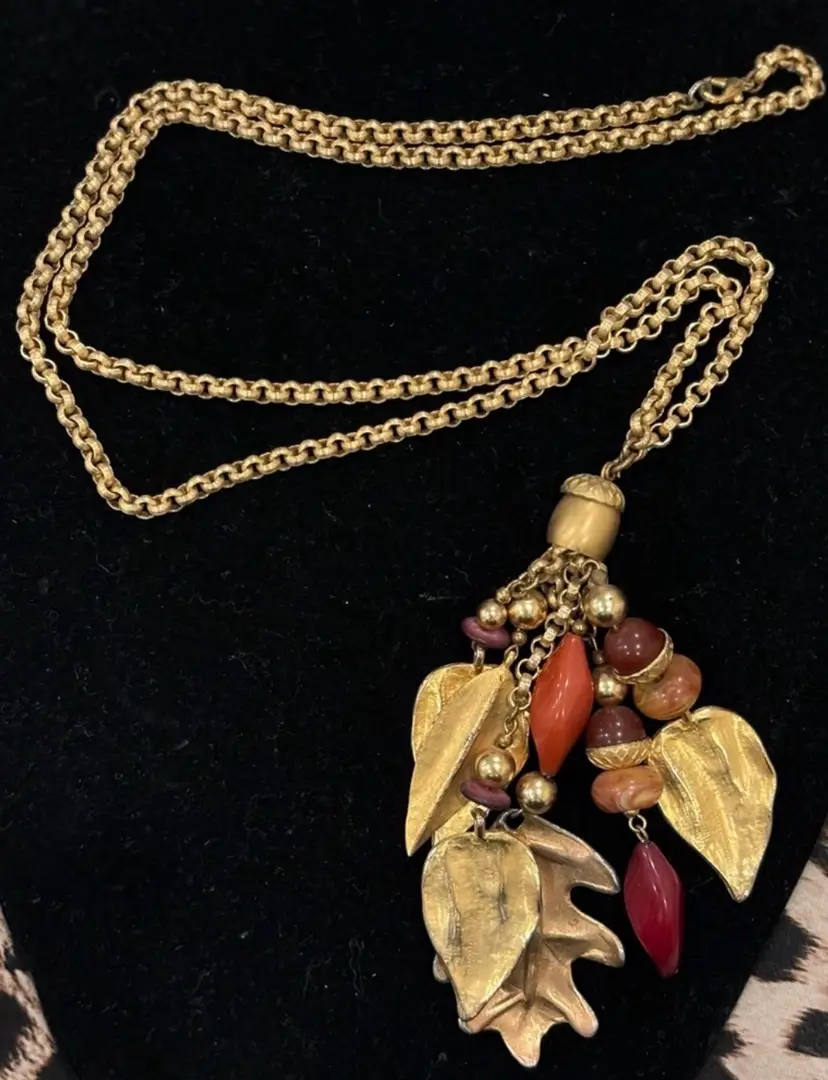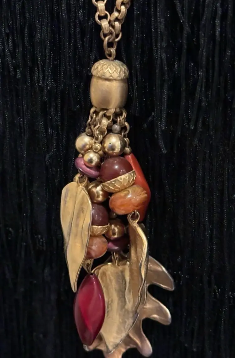 Vintage Dauplaise Acorns Oak Leaves Necklace Gold Tone Signed 21” total length In excellent condition. Beautiful link chain!