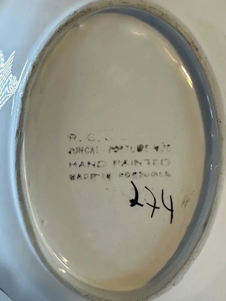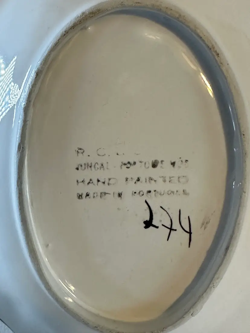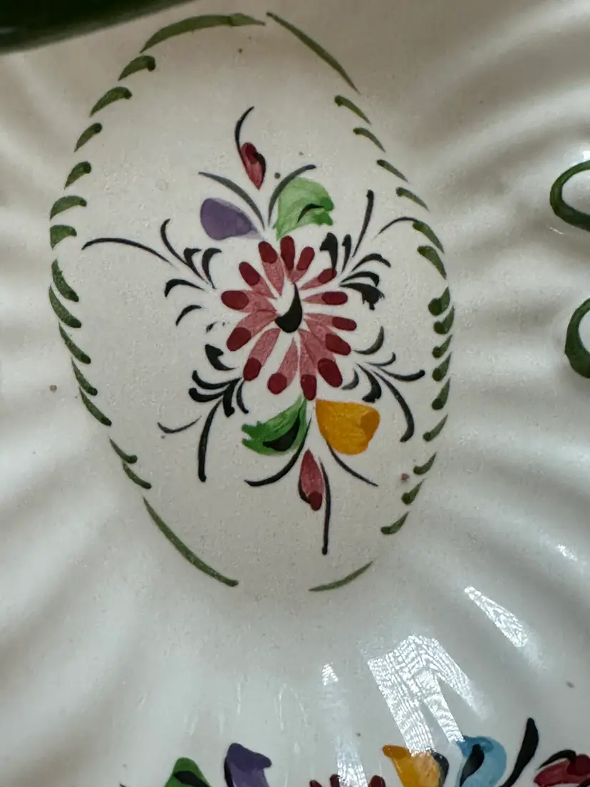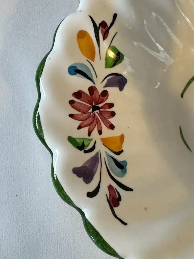 Vintage ceramic basket with hand painted floral design. Made in Portugal. Measures approximately 7” in diameter x 4.5" in height