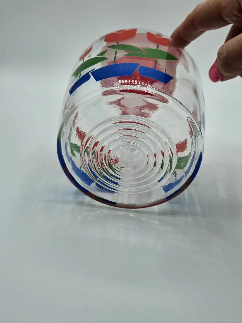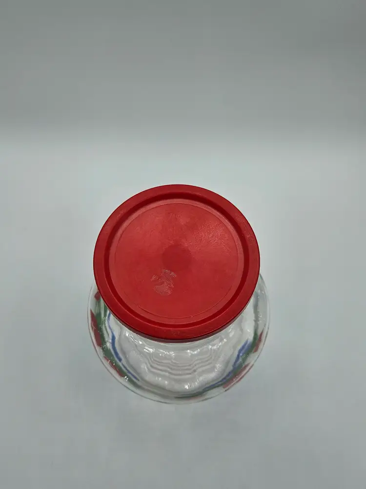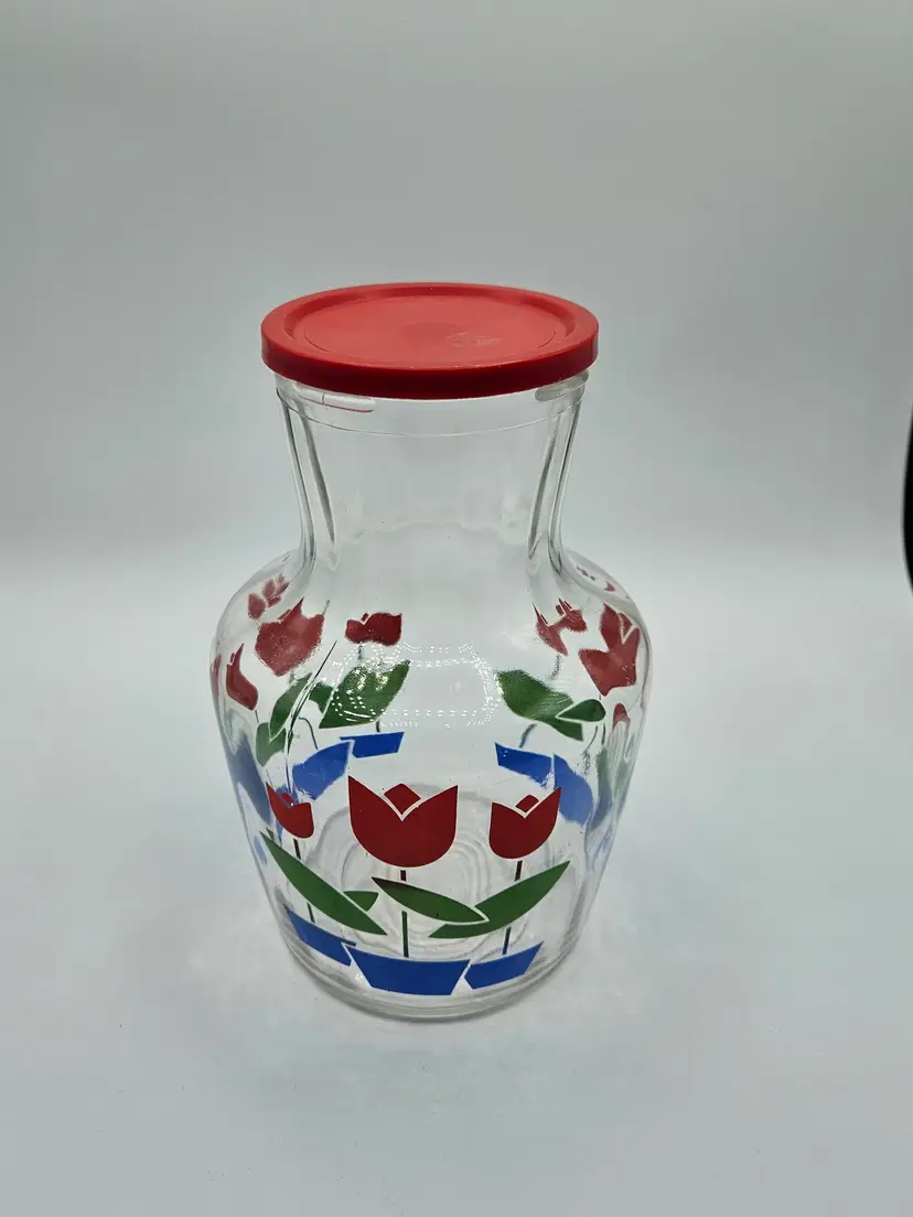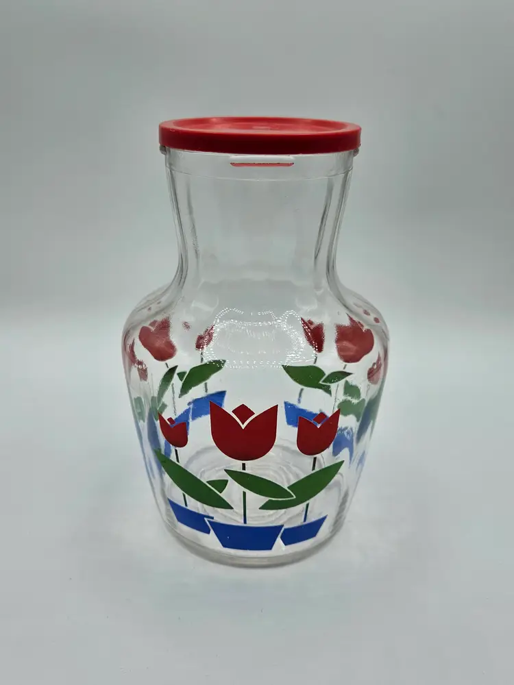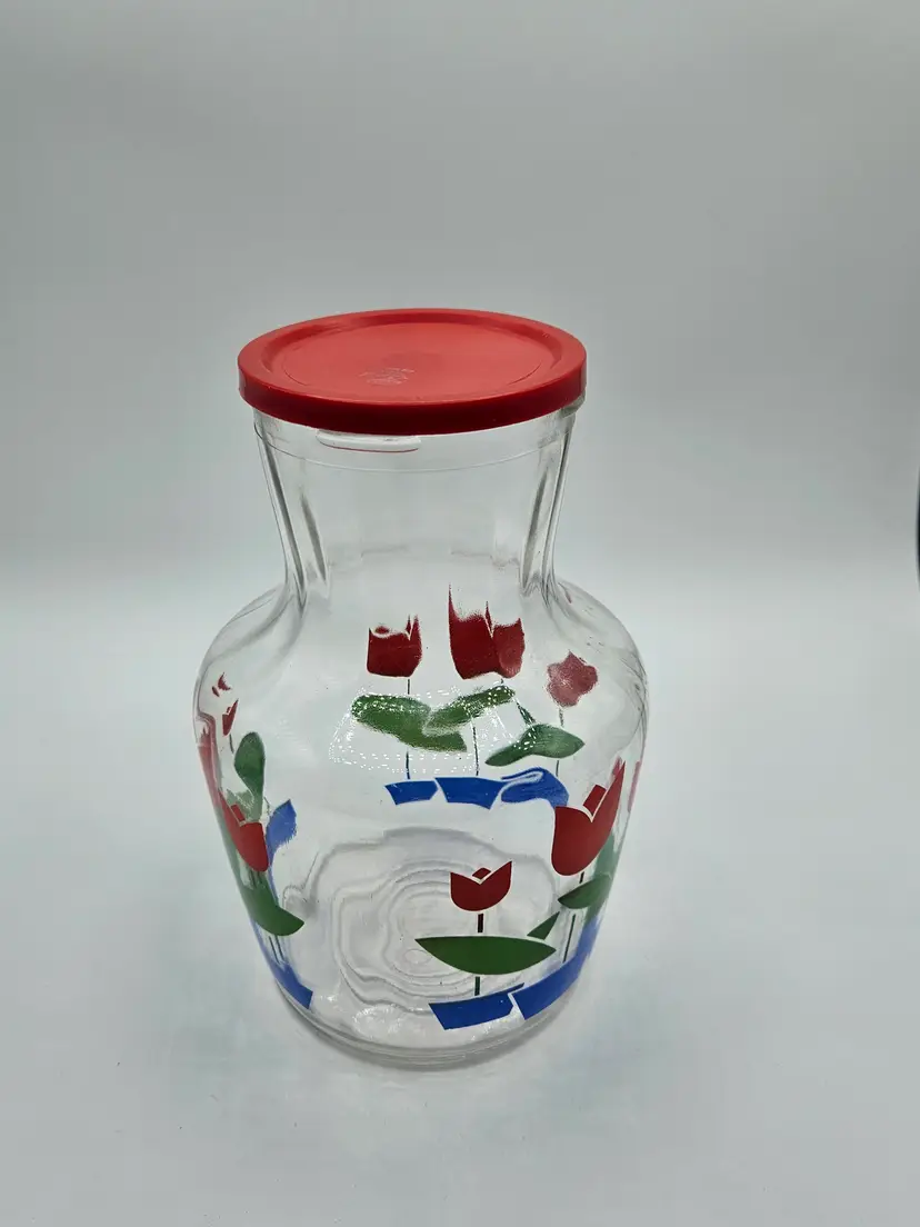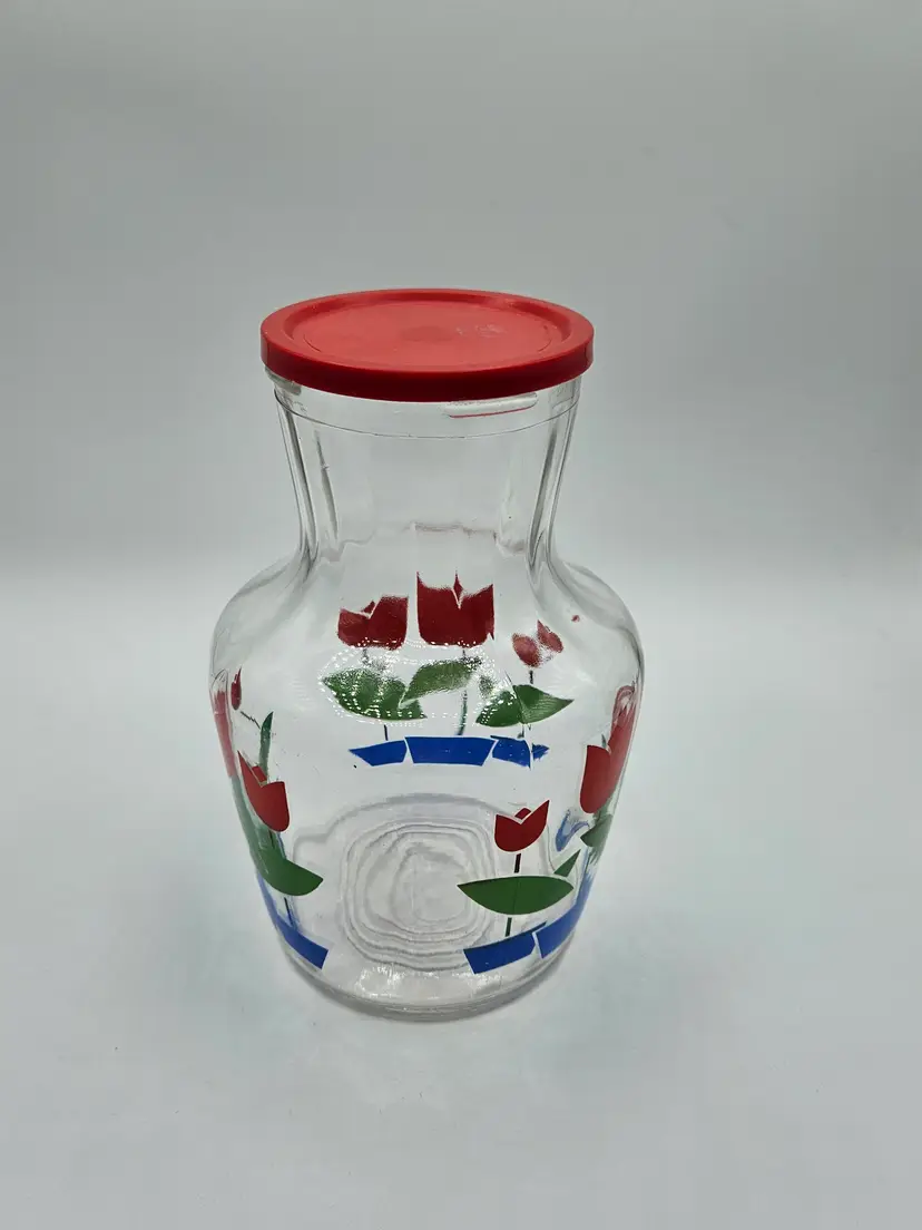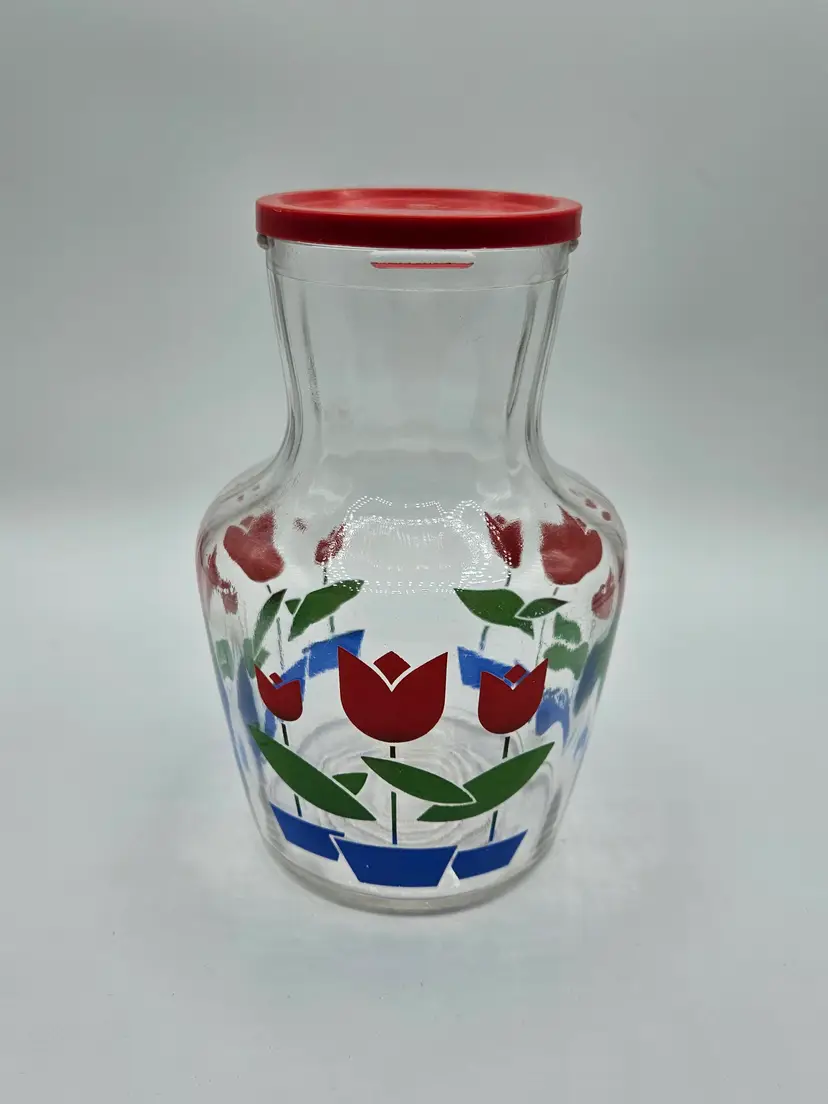 Red Tulip 7.5"H Glass Jar w/Lid Anchor Hocking/Fire King?