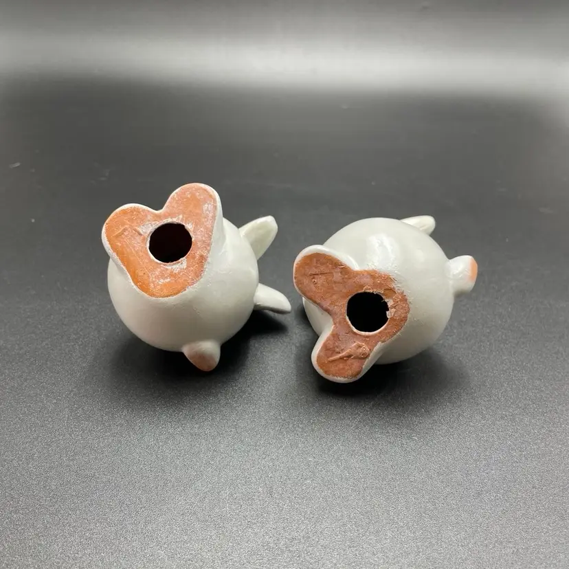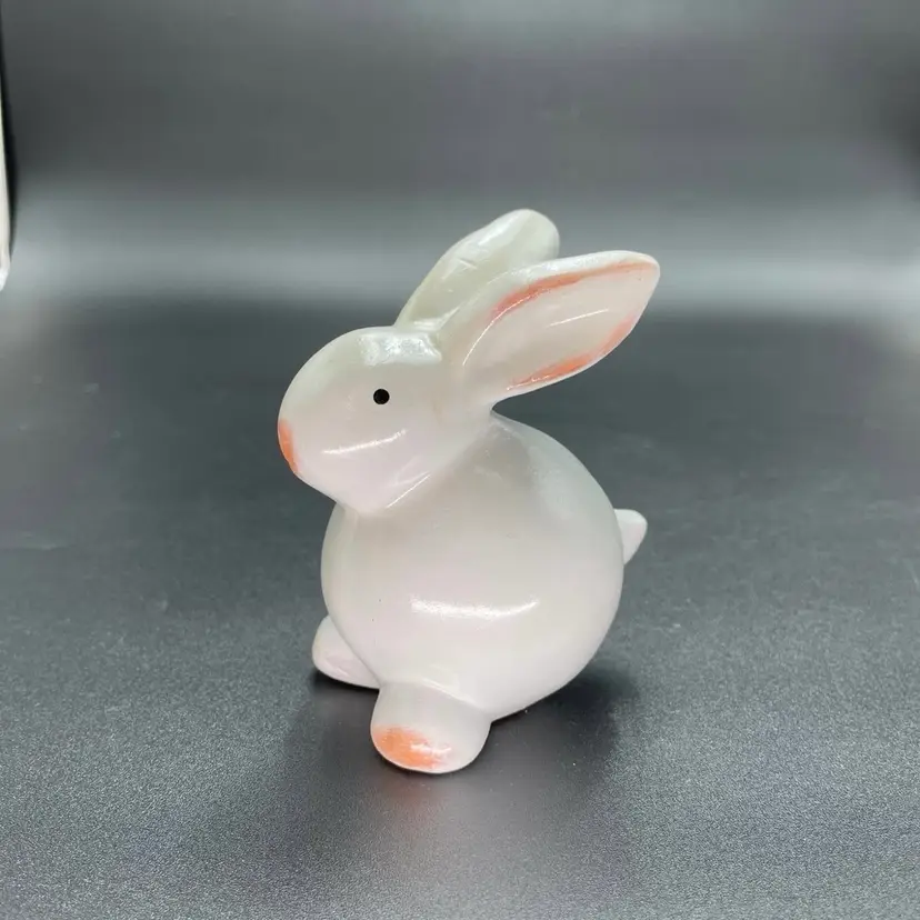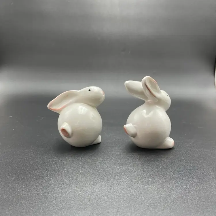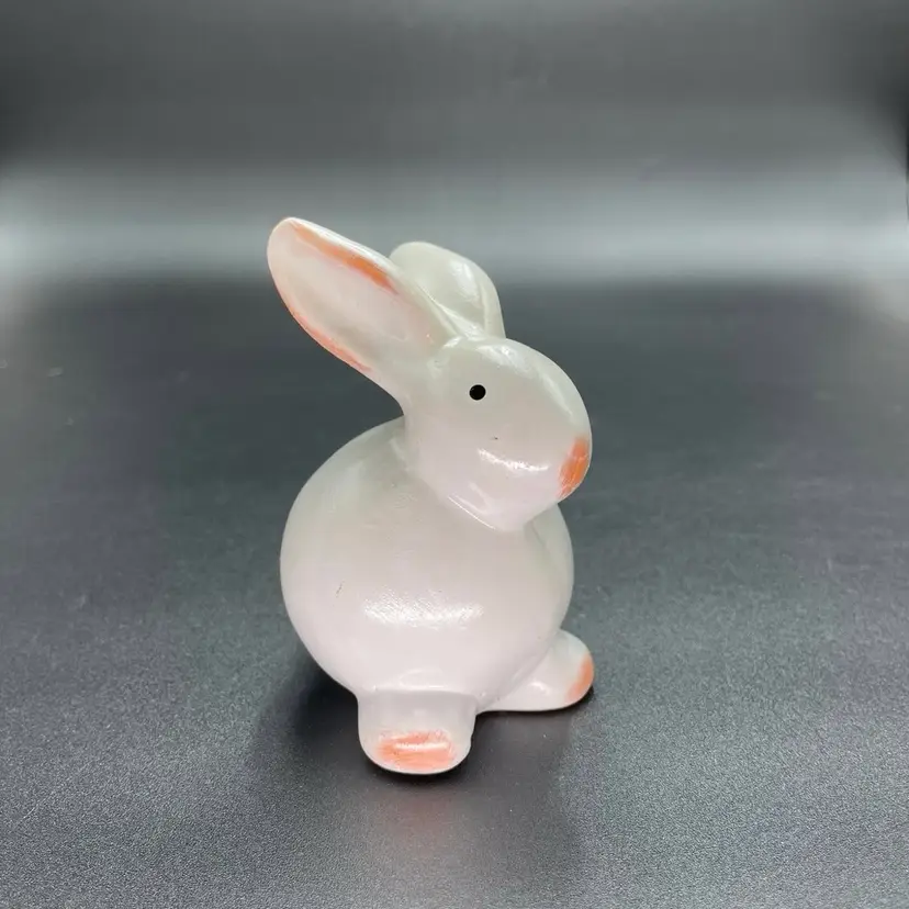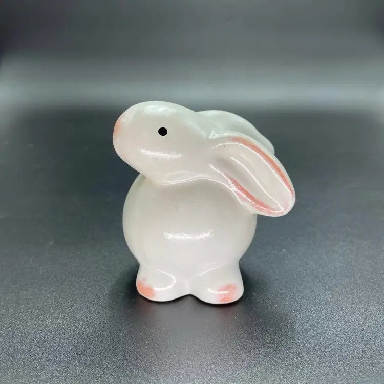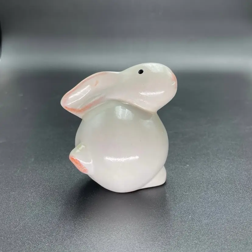 This is a set of 2 white redware pottery rabbit figurines. One measures approximately 3.25" tall. The other measures approximately 4" tall. No chips or cracks.